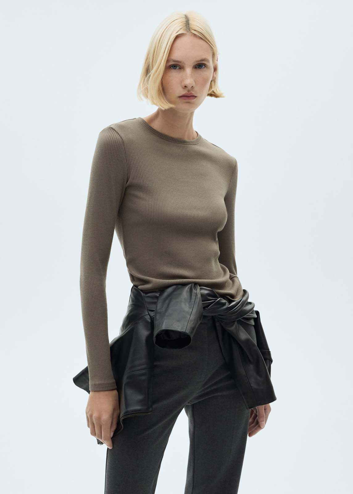 Tejido de canalé,Colección San Valentín,Cuello redondo,Tejido elástico,Diseño entallado,La modelo mide 1,79 y lleva una talla S/36,Manga larga