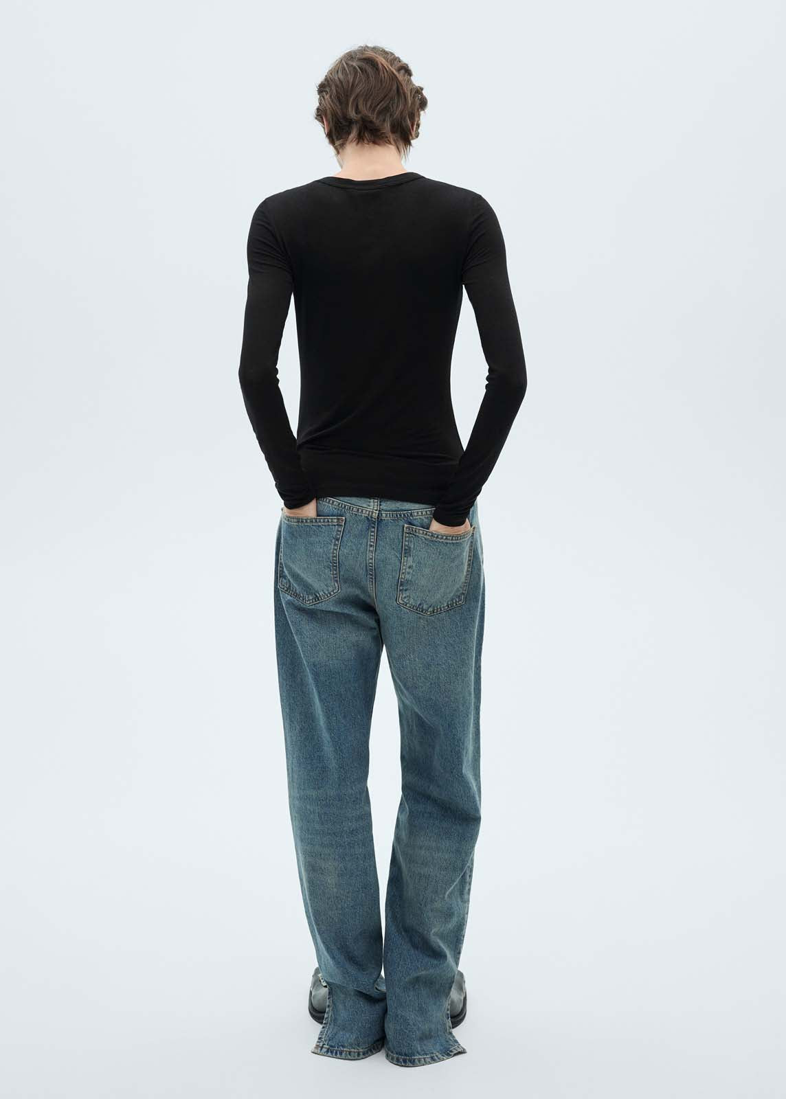 Diseño estándar,Tejido fluido,Looks de oficina,Sin cierre,Cuello redondo,Slim fit,Tejido elástico,Largo Standard,Largo manga Larga,Estructura plana Ligero,Silueta Slim,Cuello solapa Redondo,Diseño entallado,La modelo mide 1,75 y lleva una talla S/36,Manga larga
