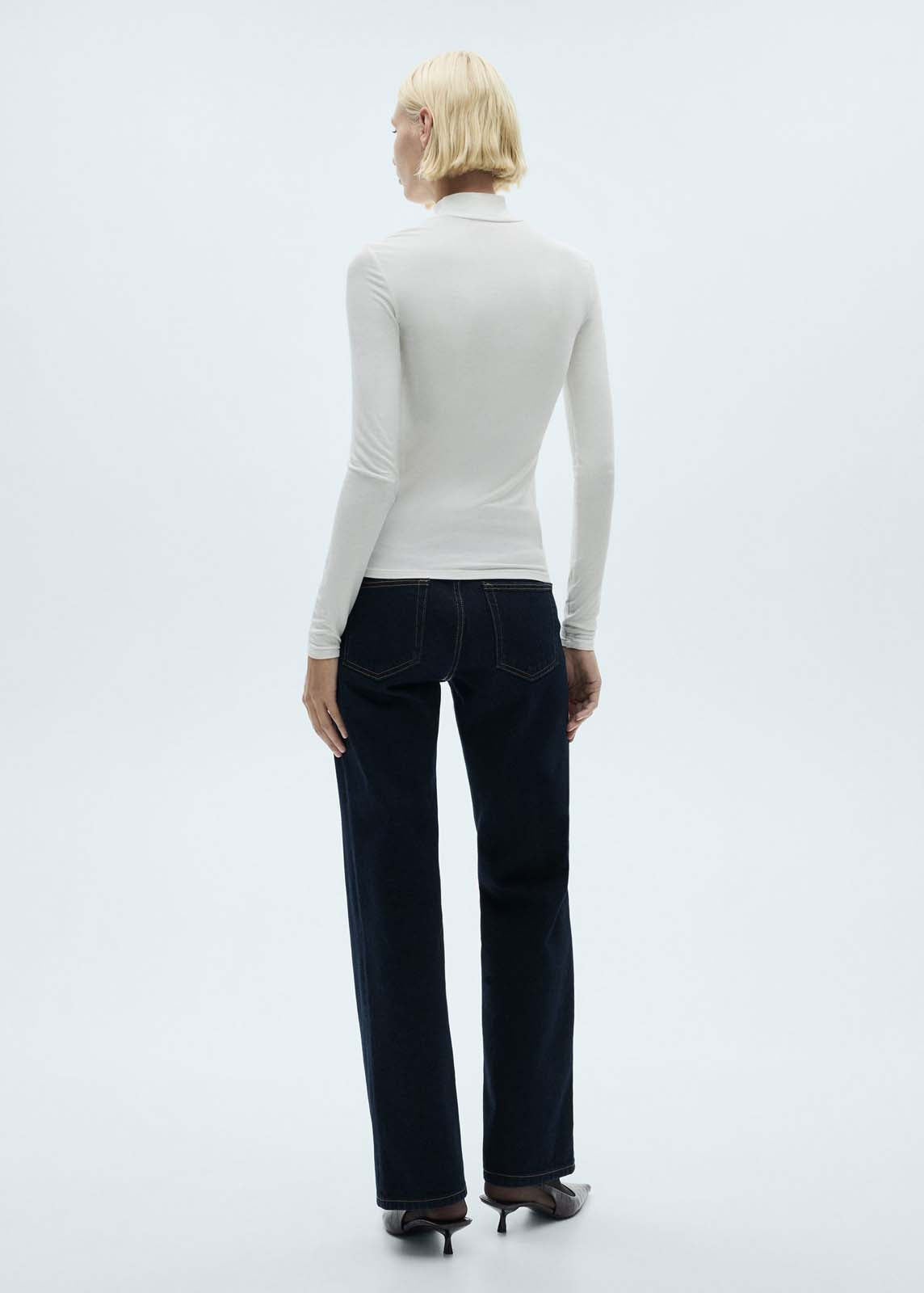 Sin cierre,Diseño recto,Cuello alto,Diseño entallado,La modelo mide 1,79 y lleva una talla S/36,Manga larga