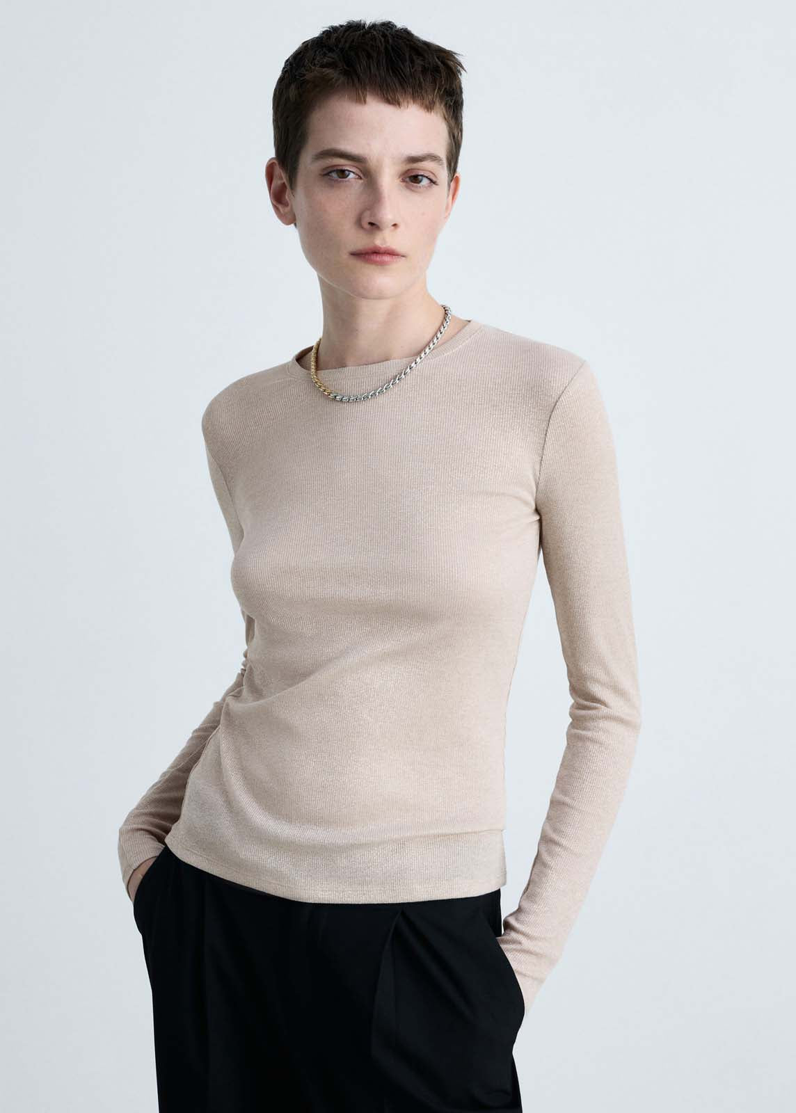 Tejido de punto fino,Sin cierre,Tejido de lúrex,Cuello redondo,Diseño recto,Manga larga