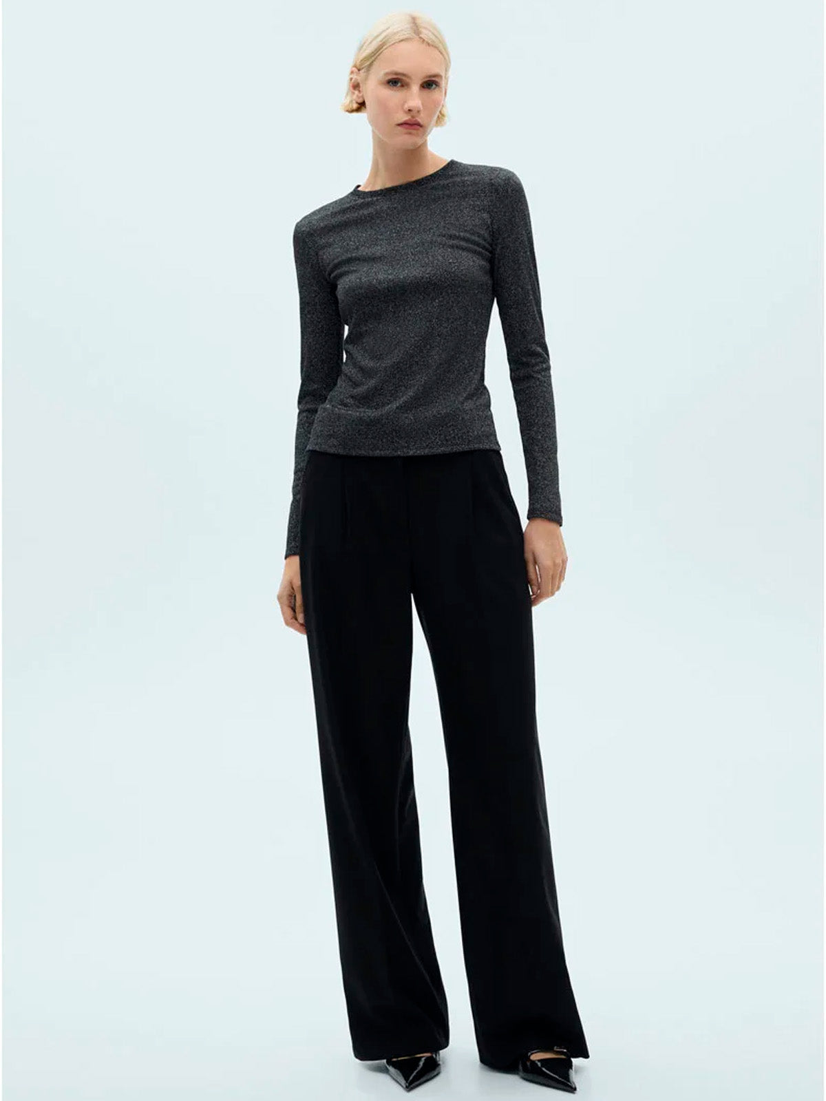 Diseño estándar,Tejido de punto fino,Sin cierre,Tejido de lúrex,Cuello redondo,Tejido ligero,Slim fit,Diseño recto,Manga larga
