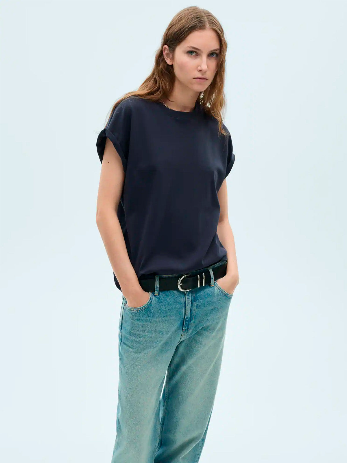 Medium weight,Tejido de gramaje medio (200gm/m2),Tejido 100% algodón regenerativo,Manga corta,Sin cierre,Cuello redondo,Regular fit,Diseño recto,Sin costuras