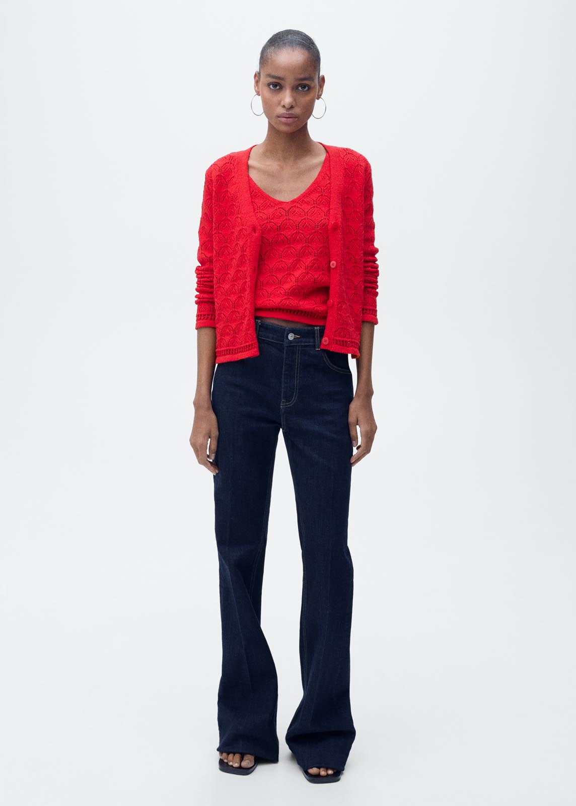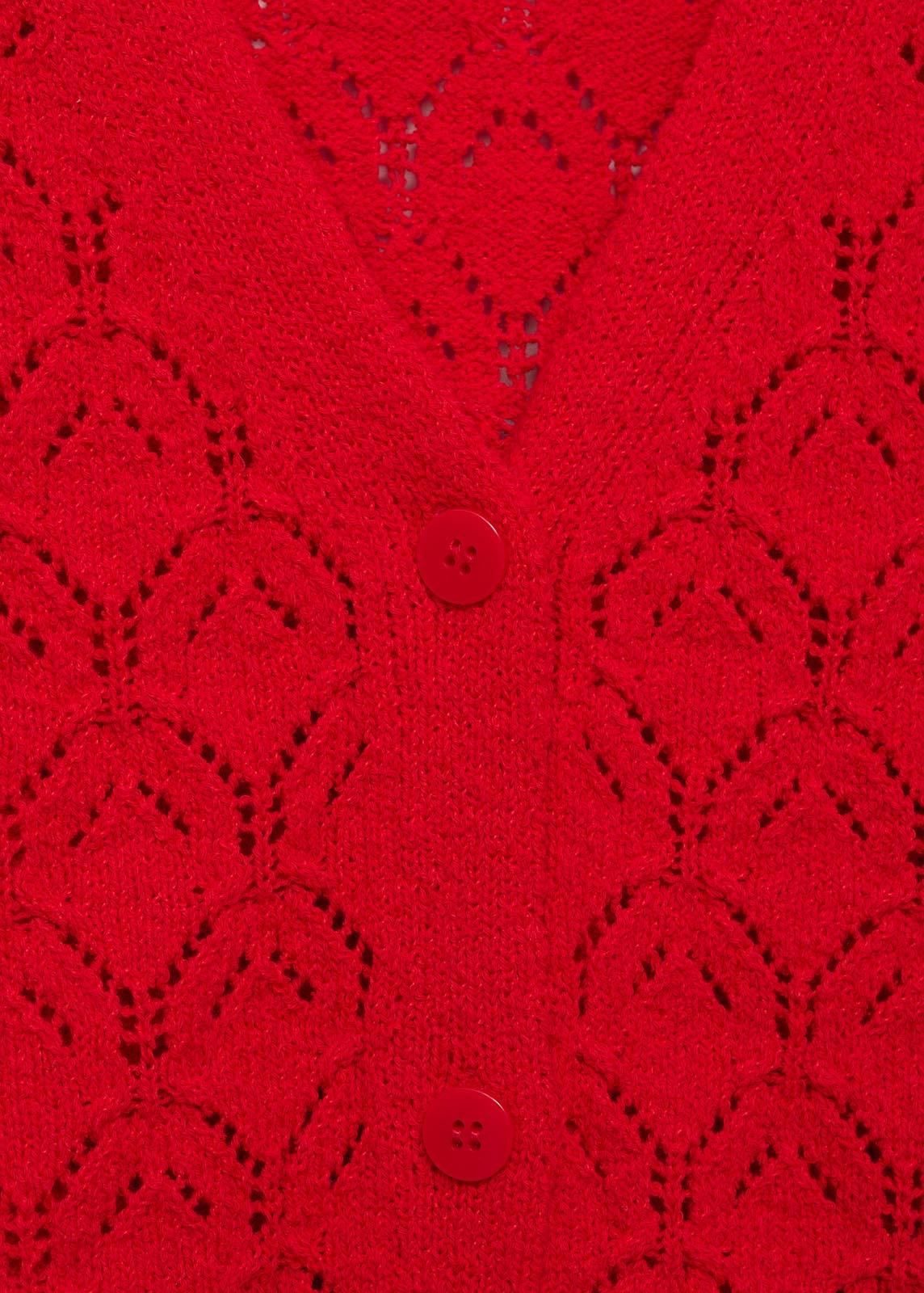 Tejido de punto fino,Disponible Plus,Total look,Diseño recto,Cuello de pico,Detalles calados,Diseño crochet,Cierre delantero con botones,Manga larga
