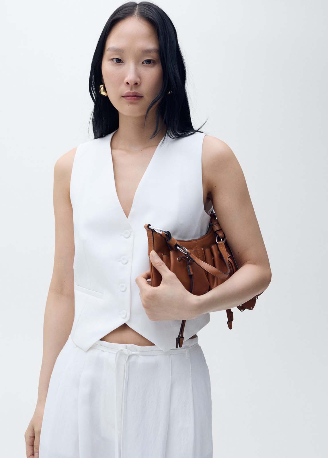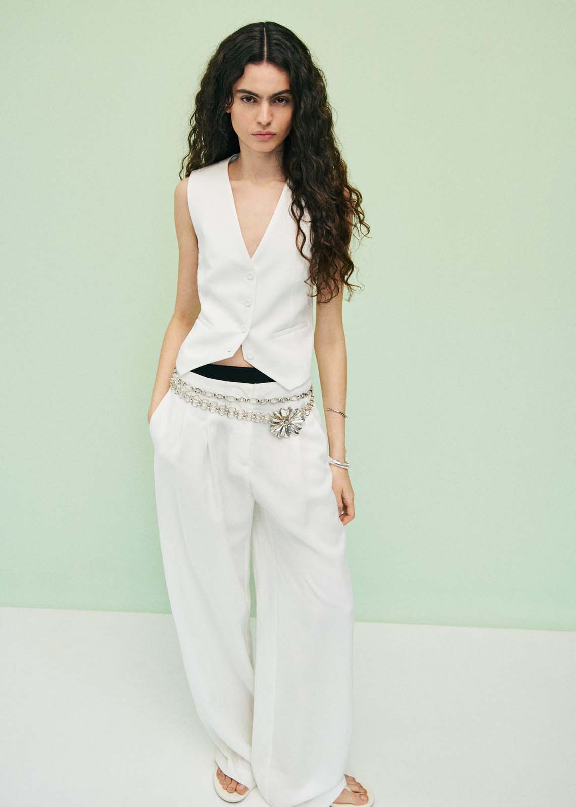 Dos bolsillos de ribete laterales,Disponible Plus,Total look,Tejido de lyocell,Diseño recto,Estilo traje,Cuello de pico,Sin mangas,Cierre delantero con botones
