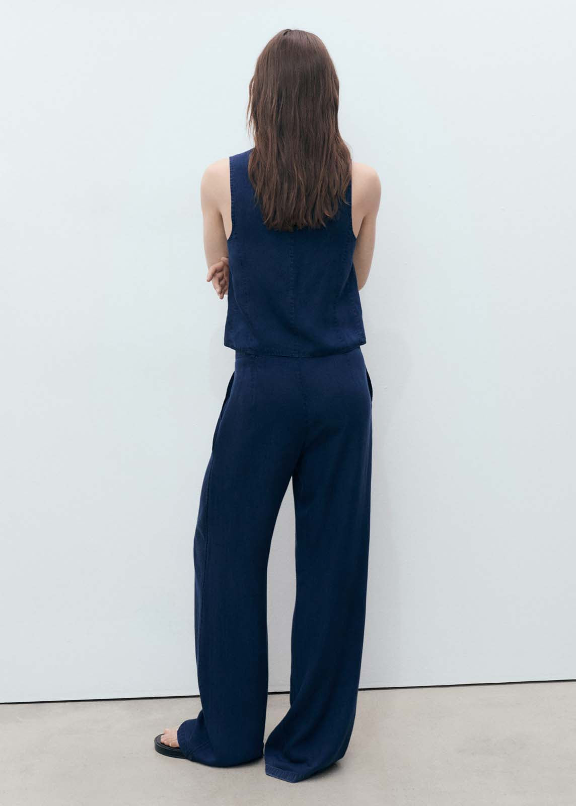Dos bolsillos de ribete laterales,Disponible Plus,Soft denim,Tejido de lyocell,Diseño recto,Cuello de pico,Sin mangas,Cierre delantero con botones
