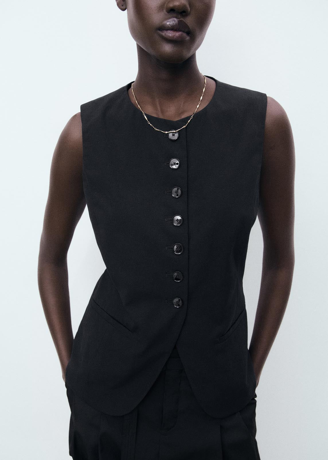 Forro interior 100% algodón,Sin mangas,Cuello redondo,Tirantes anchos,Total look,Diseño recto,Cierre delantero con botones