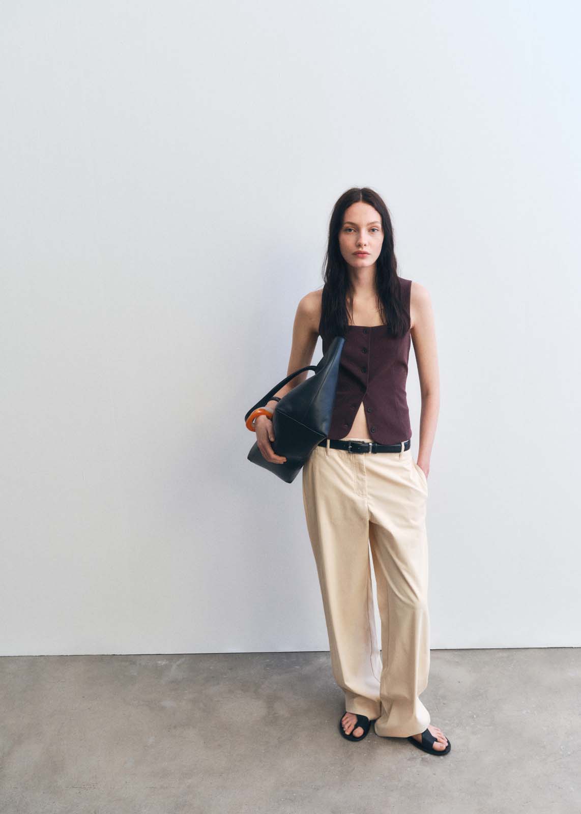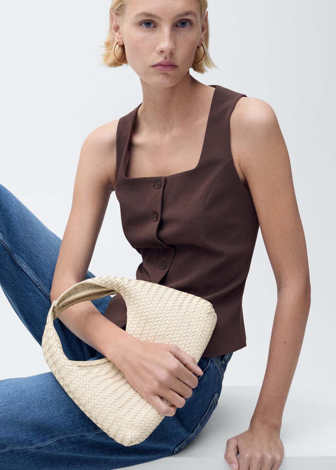 Dos bolsillos de ribete delanteros,Total look,Cuello escotado,Estilo traje,Sin mangas,Cierre delantero con botones,Diseño entallado,Forro interior