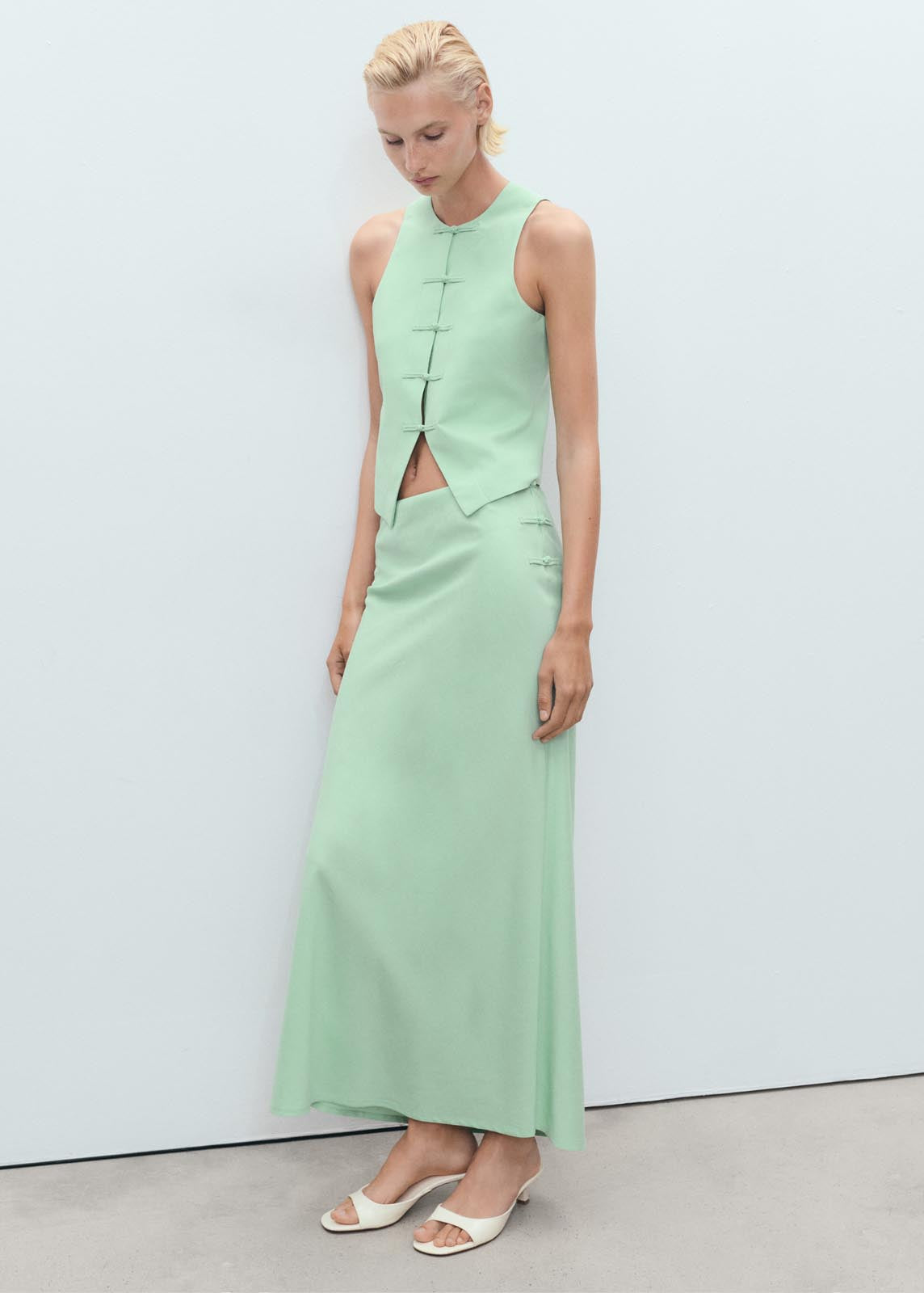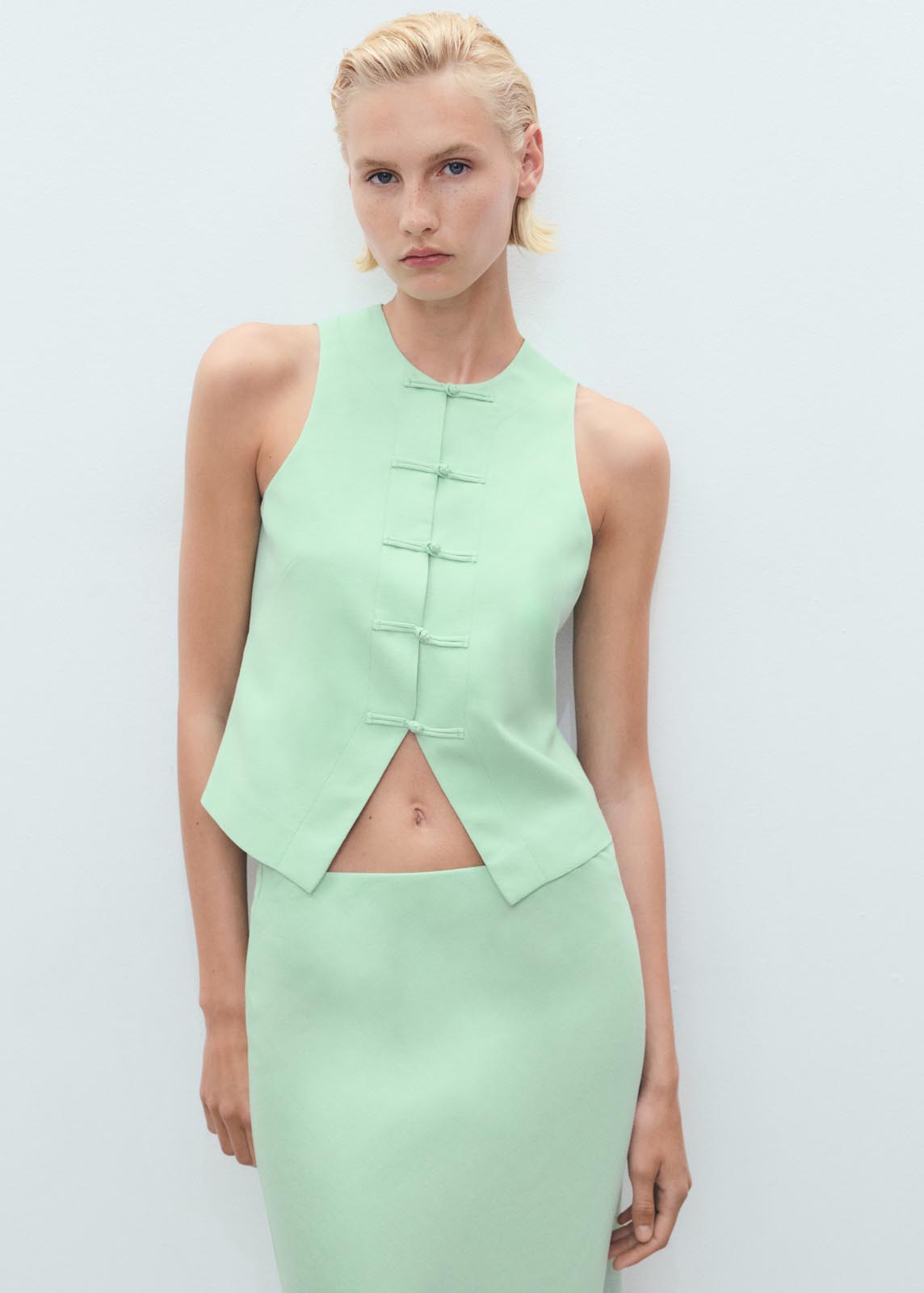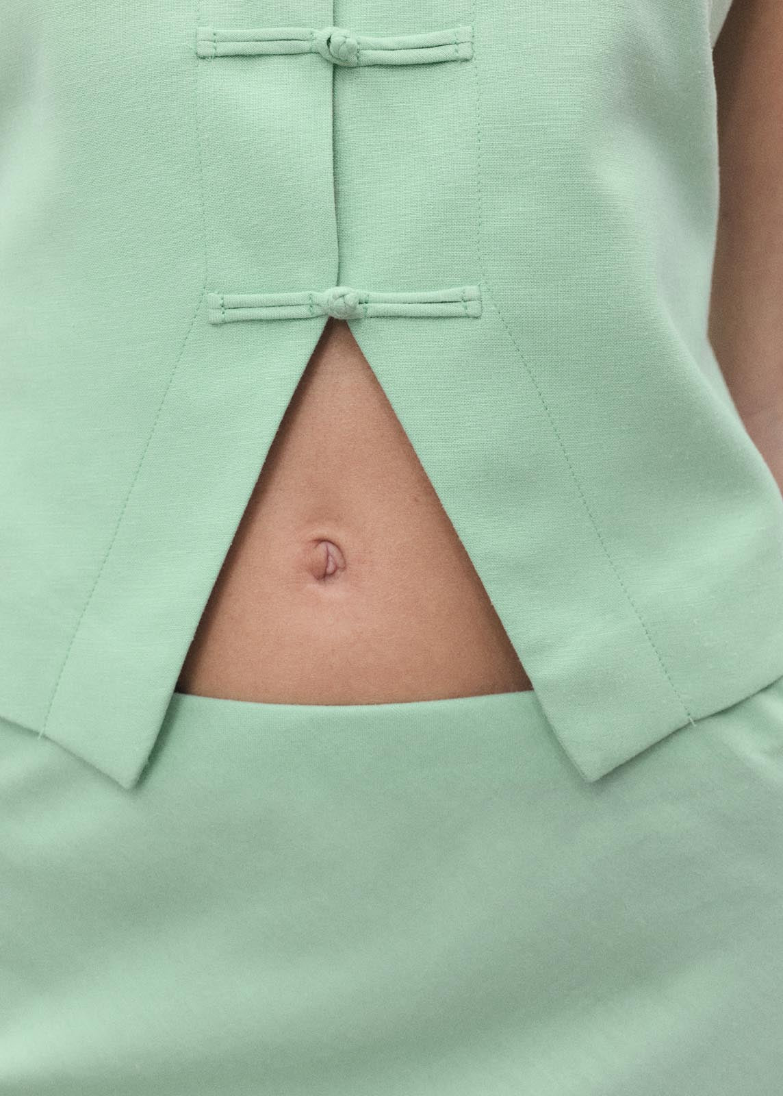 Tejido mezcla de algodón y lino,Cierre delantero,Cuello redondo,Total look,Estilo traje,Sin mangas