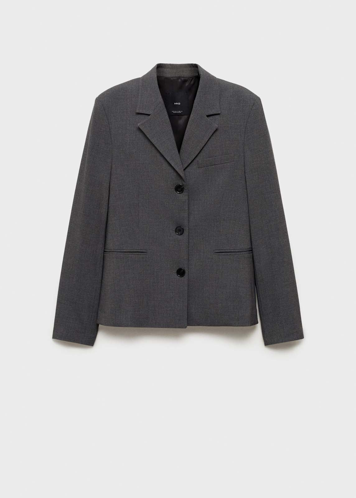 Cuello pico con solapa,Dos bolsillos de ribete laterales,Cierre de botones en la parte delantera,Solapas con muesca,Total look,Manga larga con puños abotonados,Diseño recto,Estilo traje,Un bolsillo de ribete en el pecho,Forro interior