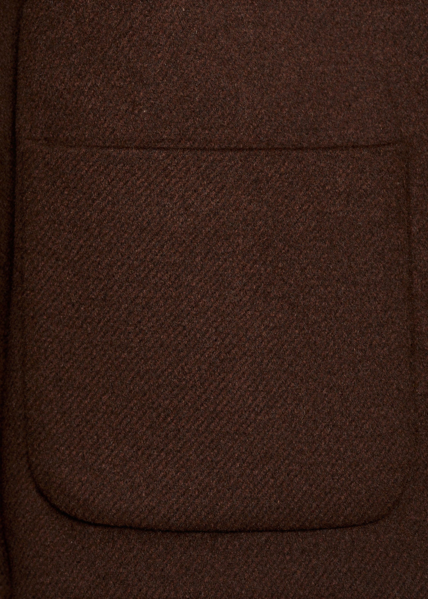 Puños con botones funcionales,Tejido mezcla de lana,Cuello de solapa,Dos bolsillos de parche en la parte delantera,Cierre de botones en la parte delantera,Diseño corto,Diseño recto,Forro interior,Manga larga