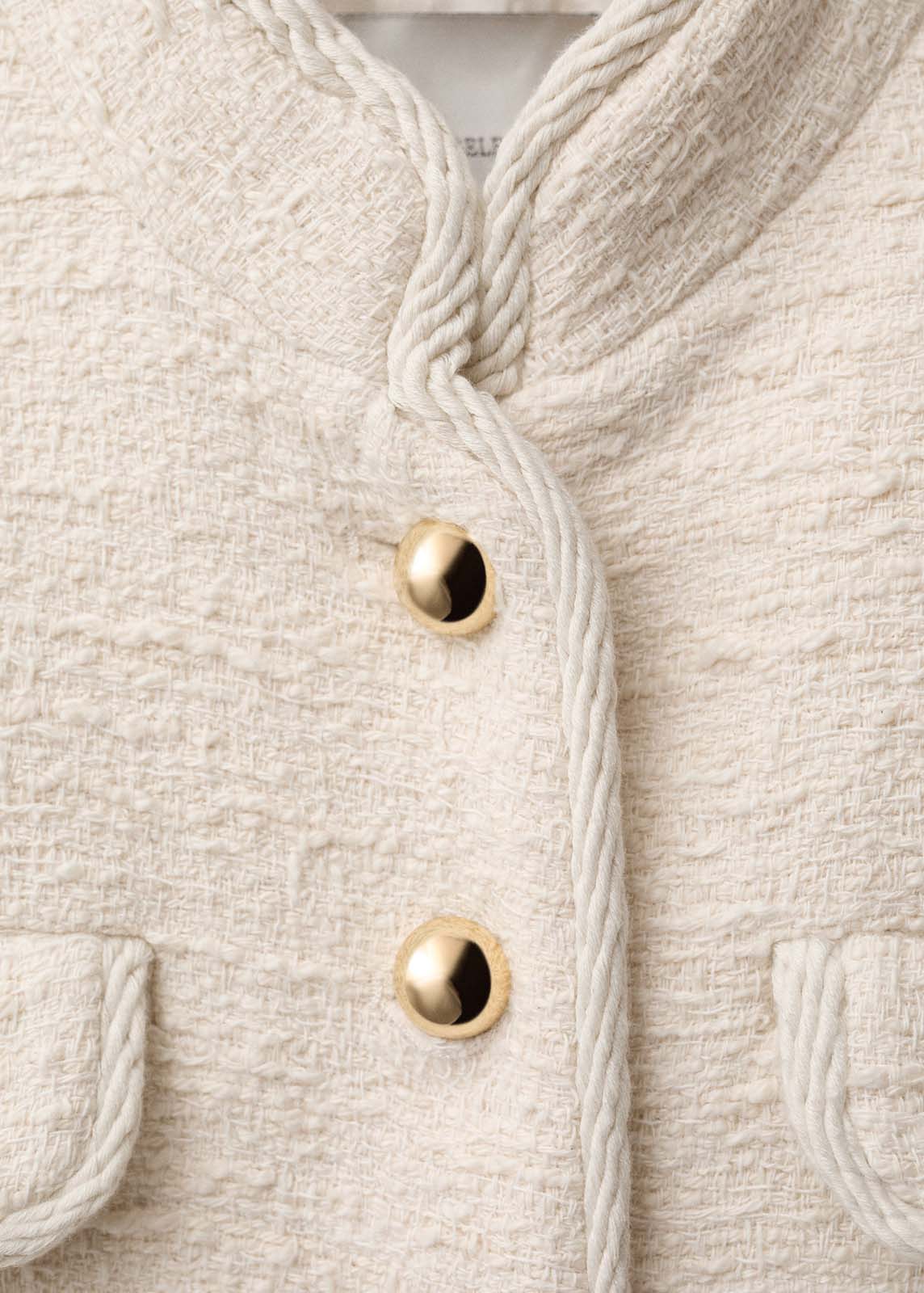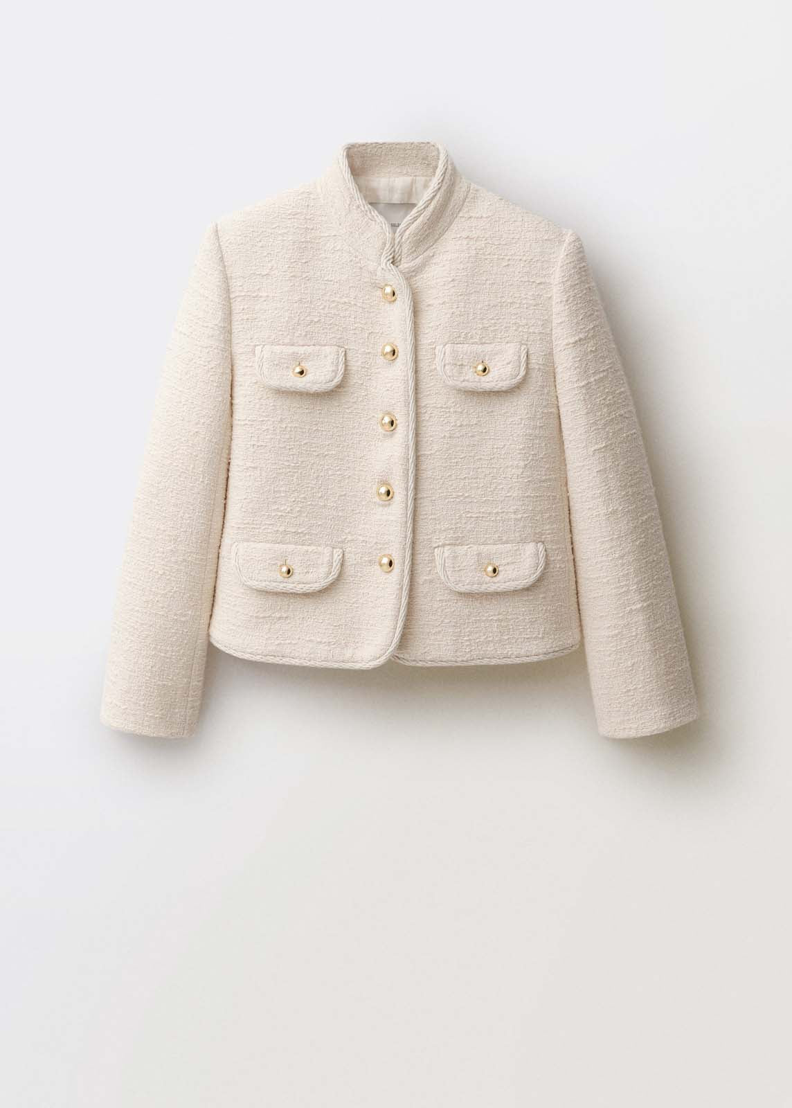 Botones efecto joya,Cuatro bolsillos de solapa en la parte delantera,Cierre de botones en la parte delantera,Colección Selection,Tejido tweed,Cuello de tira,Manga larga con puños abotonados,Diseño recto,Tejido de algodón,Forro interior