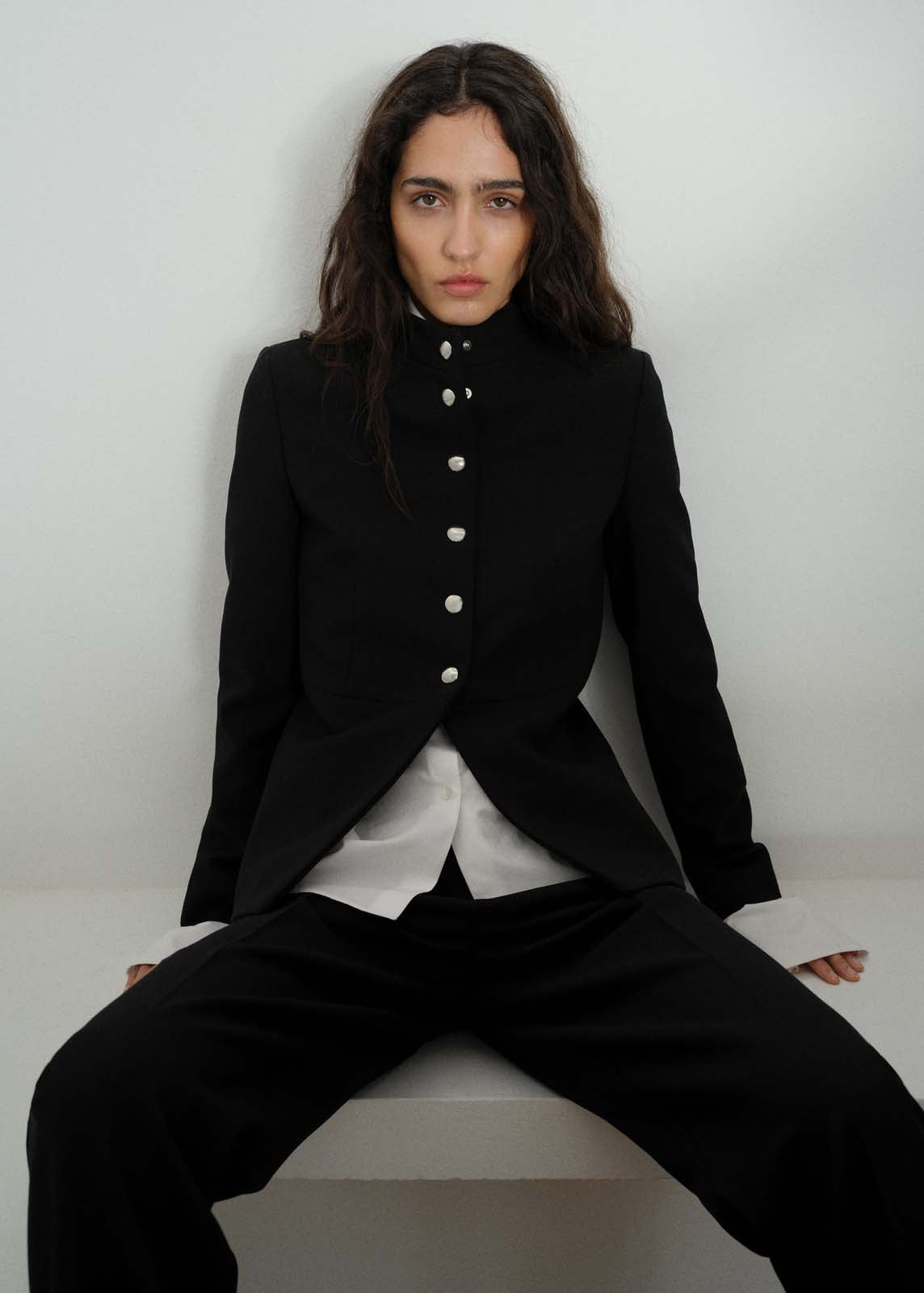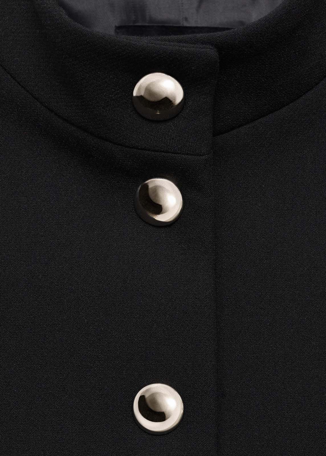 Botones efecto joya,Cierre de botones en la parte delantera,Disponible Plus,Cuello de tira,Manga larga con puños abotonados,Diseño midi,Diseño entallado,Forro interior