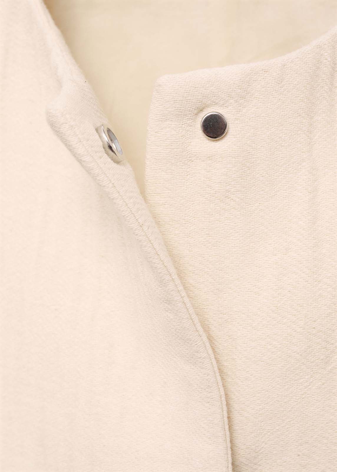 Cierre delantero de cremallera y botones a presión oculto con tapeta,Cuello redondo,Diseño oversize,Ubicacion cierre Cierre Delantero,Estructura plana Medio,Tejido 100% algodón,Manga larga