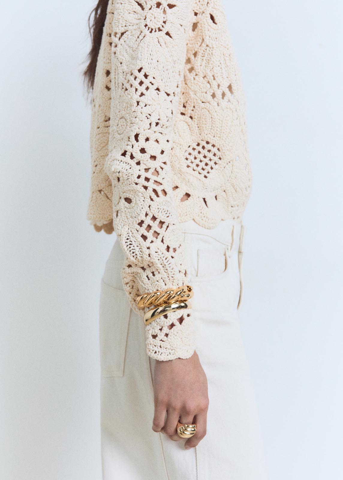 Diseño estándar,Sin cierre,Bajo festoneado,Tejido calado,Cuello redondo,Manga larga