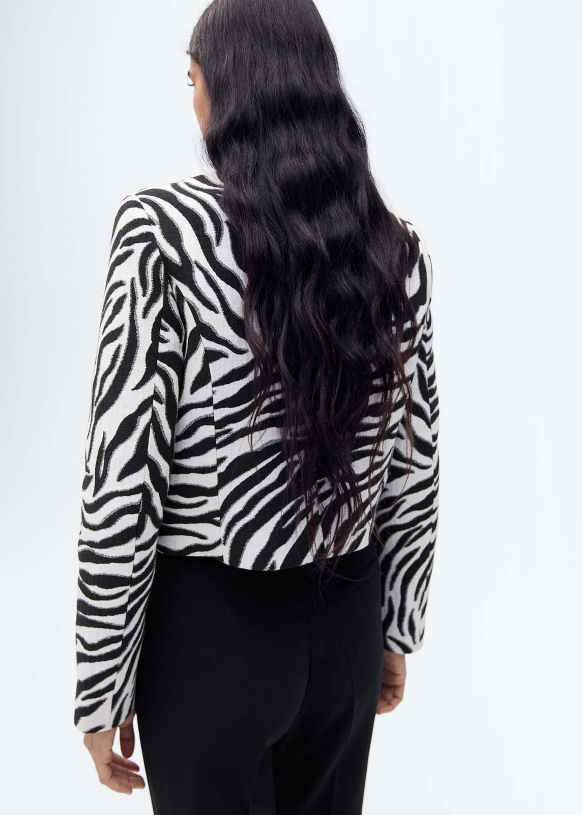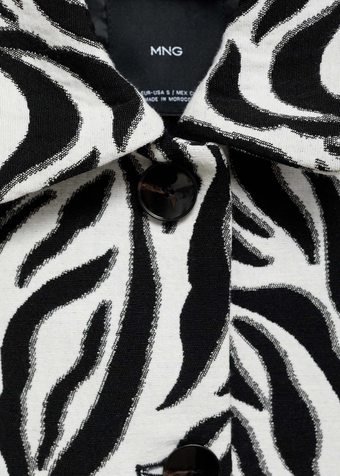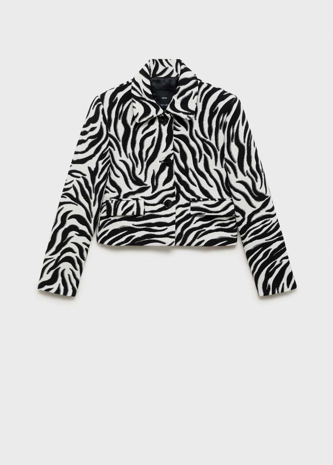 Cuello de solapa,Estampado animal print,Estampado de cebra,Diseño recto,Cierre delantero con botones,Forro interior,Manga larga,Dos bolsillos de solapa en la parte frontal