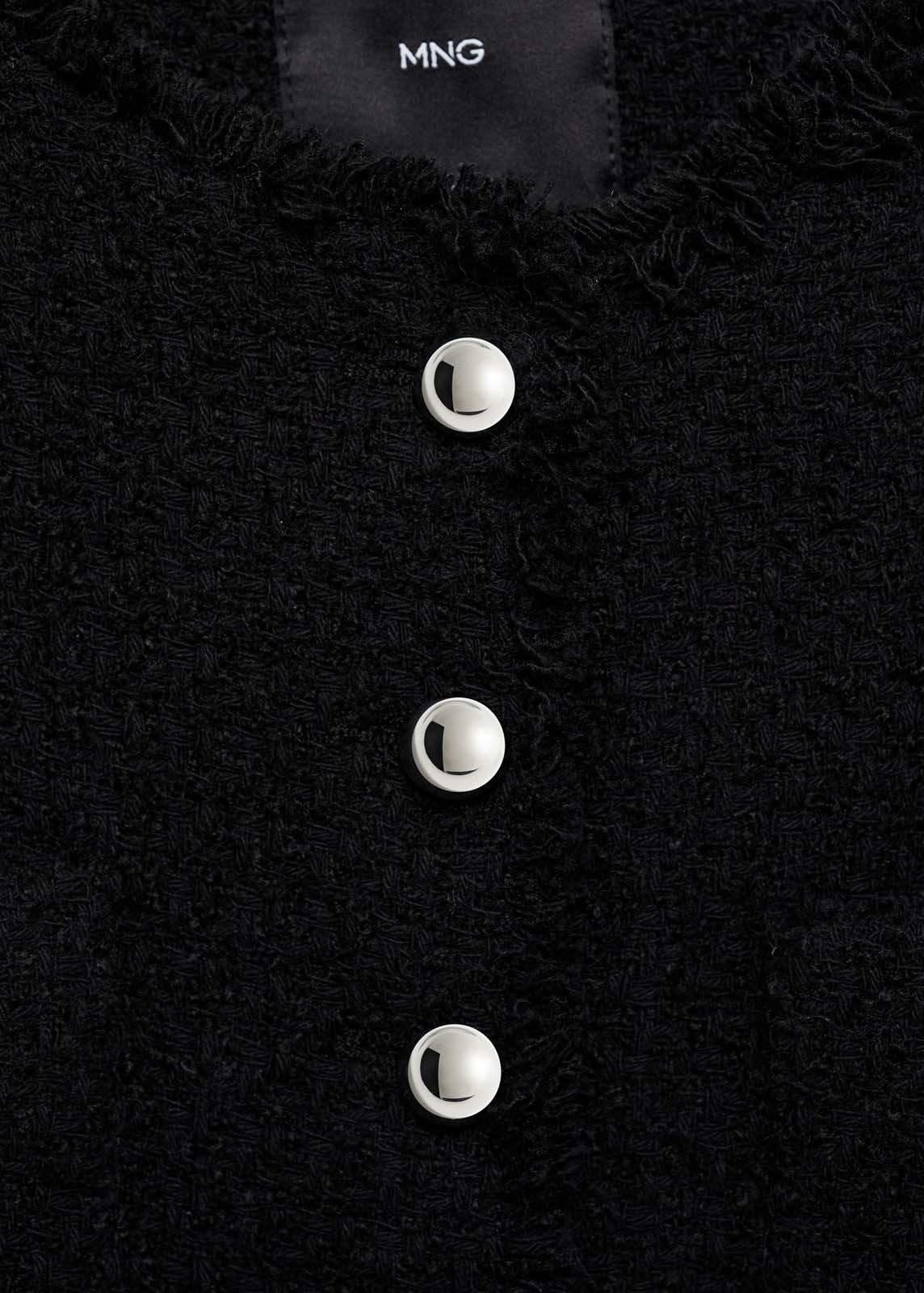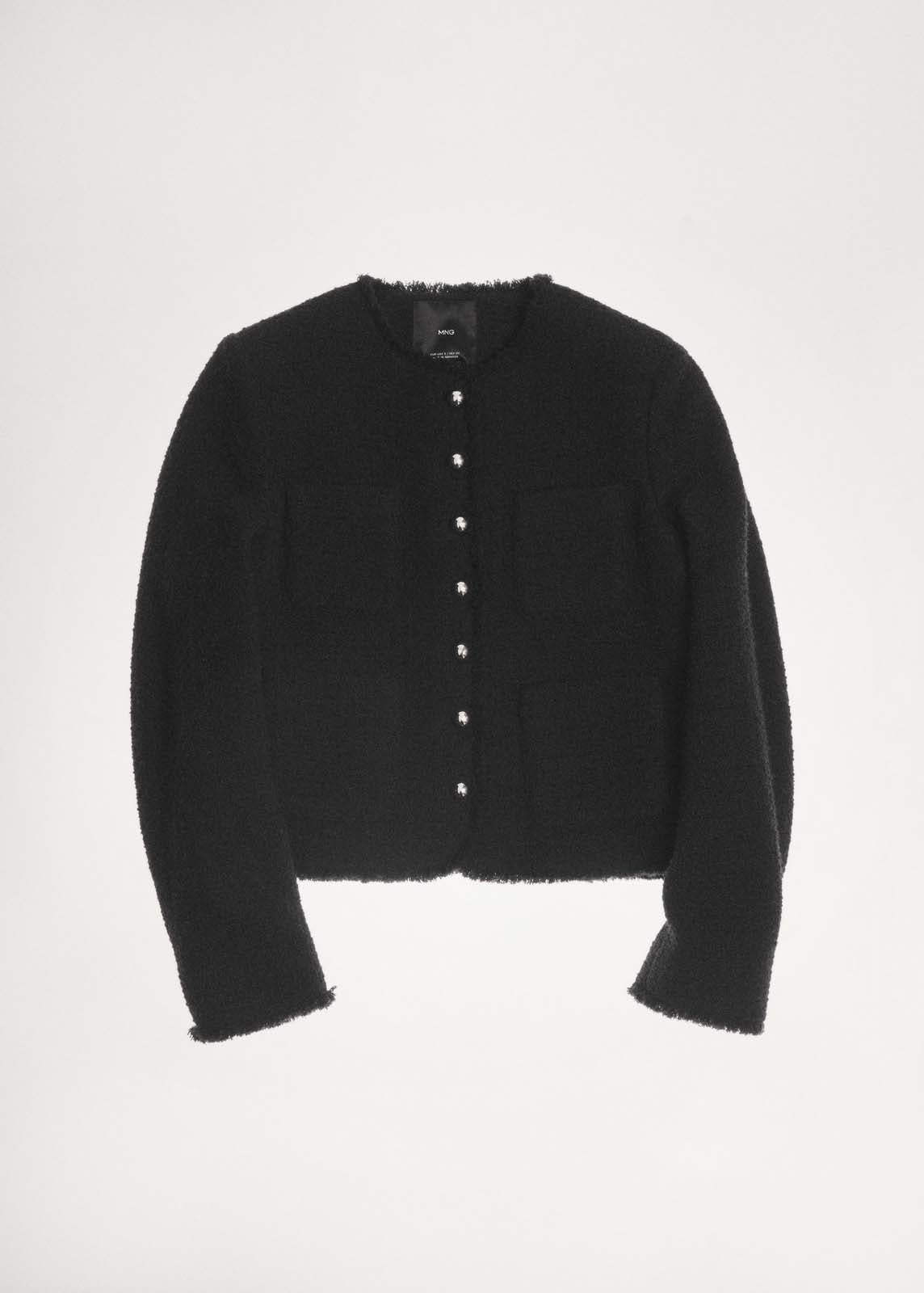 Puños abotonados,Cierre de botones en la parte delantera,Cuello redondo,Terminaciones deshilachadas,Tejido tweed,Solo forro,Disponible Plus,Tejido mezcla de algodón y lana,Diseño recto,Tamaño mediano,Dos bolsillos de parche frontales,Manga larga
