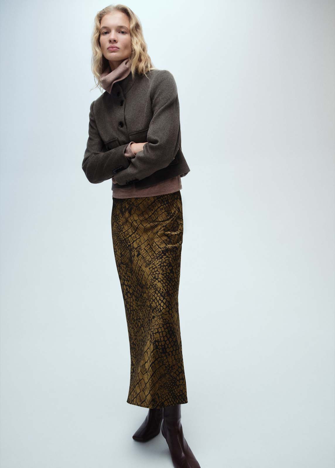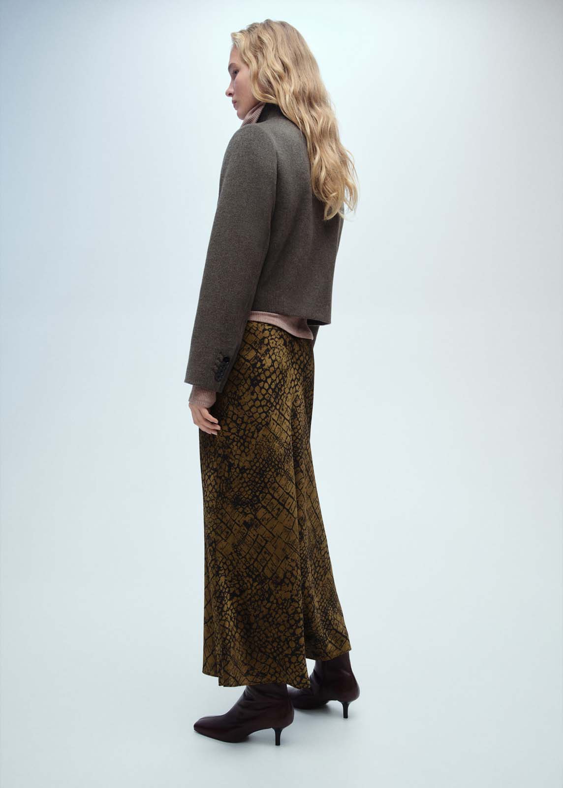 Cintura con goma elástica,Tejido fluido,Tiro medio,Sin cierre,Tejido ligero,Diseño evasé,Estampado de cocodrilo,Sin forro interior,Diseño largo