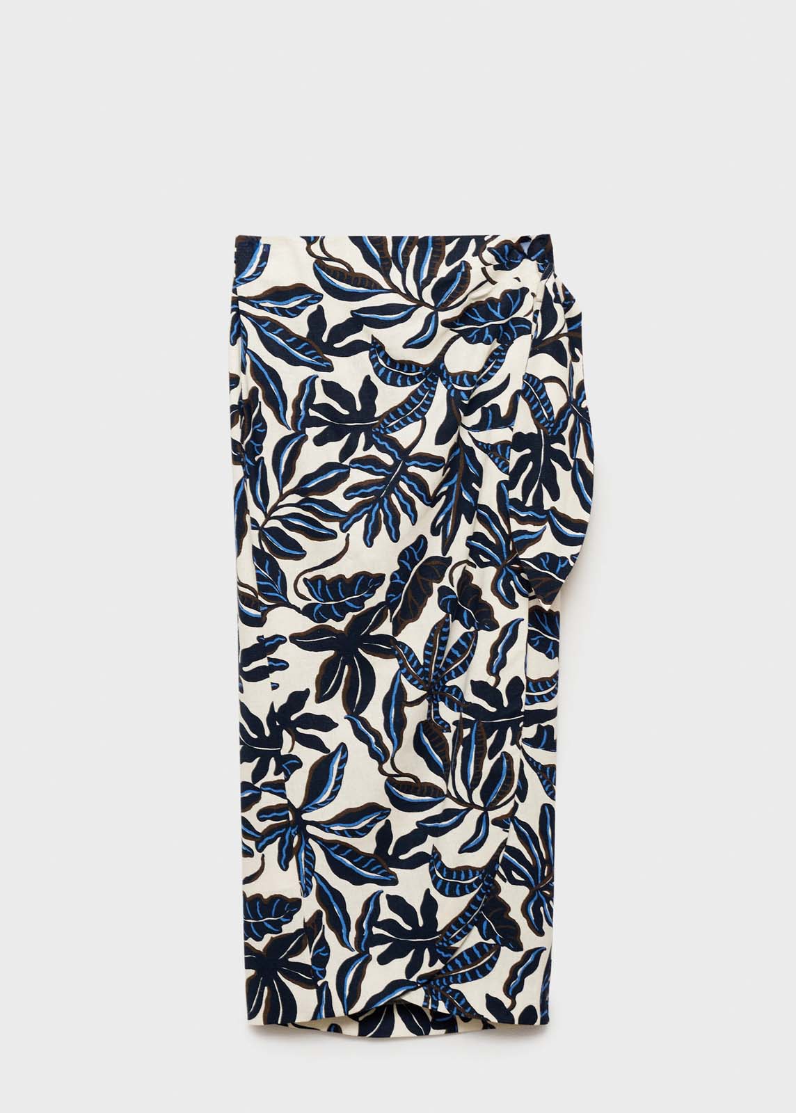 Trabilla única,Detalle de nudo en la cintura,Cintura con goma elástica,Tejido mezcla de lino,Total look,Diseño recto,Estampado de hojas,Diseño midi,Tiro alto
