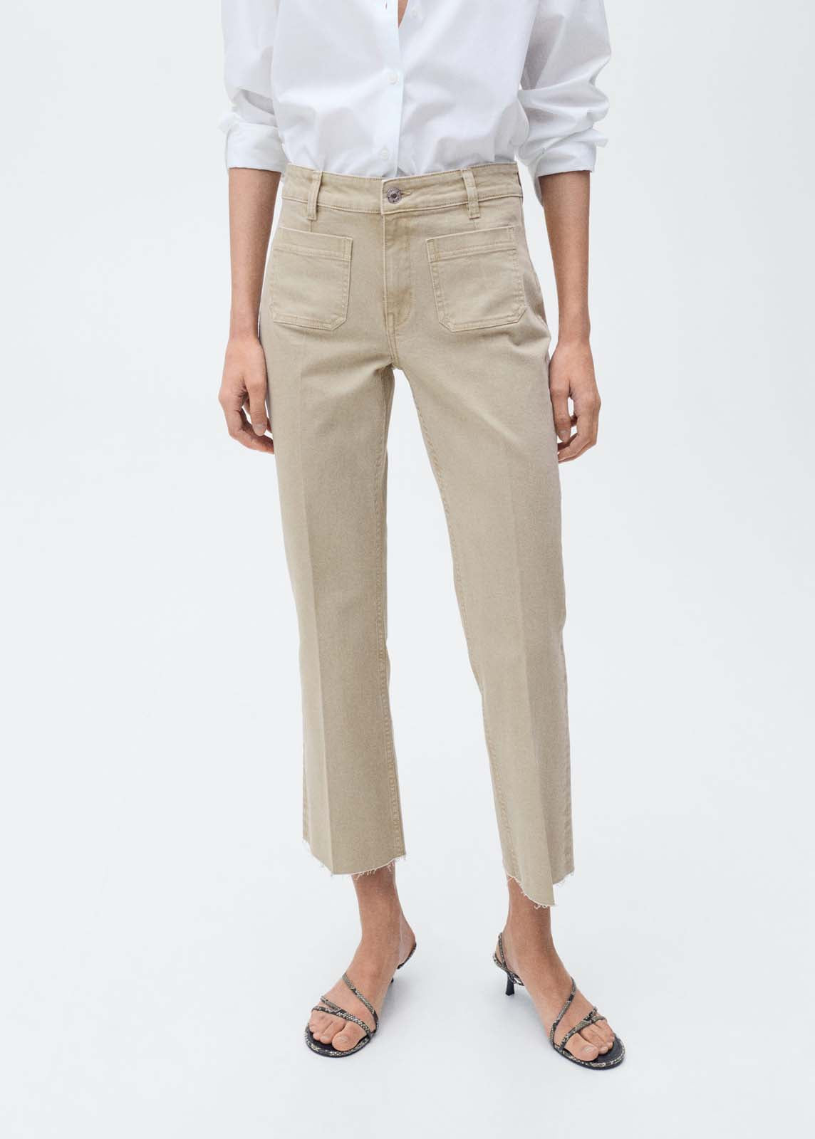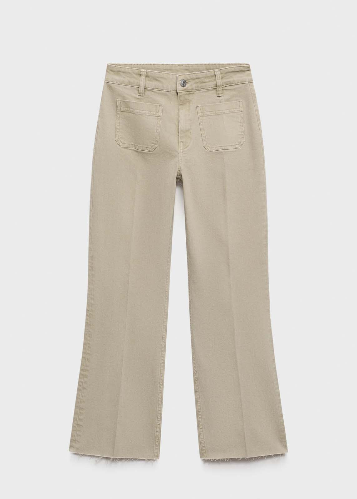 Trabillas,Tiro medio,Cierre delantero de cremallera y botón,Ankle brace,Dos bolsillos de parche en la parte delantera,Tejido elástico,Estilo flare,Tejido de algodón estilo tejano vaquero