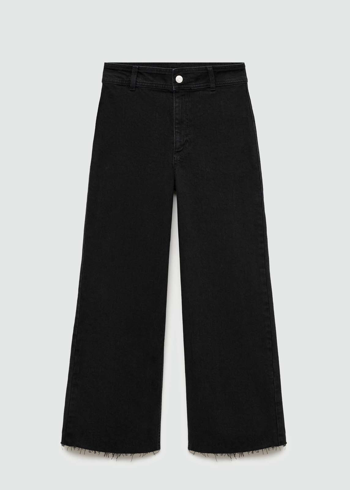 Cierre de cremallera y botón,Largo interior 72 cm,Trabillas,Diseño culotte,Bolsillos traseros,Disponible Plus,Bajo deshilachado,Tejido elástico,Tejido de algodón estilo tejano vaquero,La modelo mide 179 y lleva una talla 36,Tiro alto