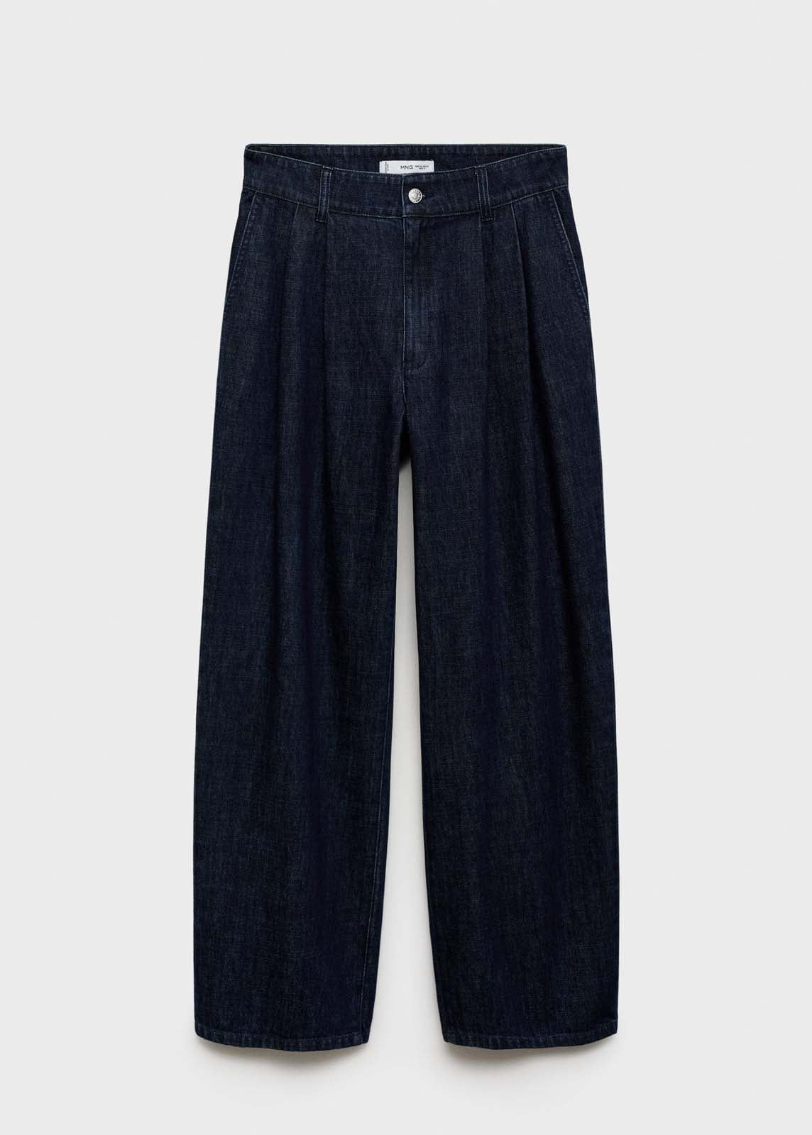 Diseño wideleg,Trabillas,Tiro medio,Cierre delantero de cremallera y botón,Detalle de pinzas,Dos bolsillos laterales,Tejido de algodón estilo tejano vaquero,Diseño largo,Rinse wash,Forro interior