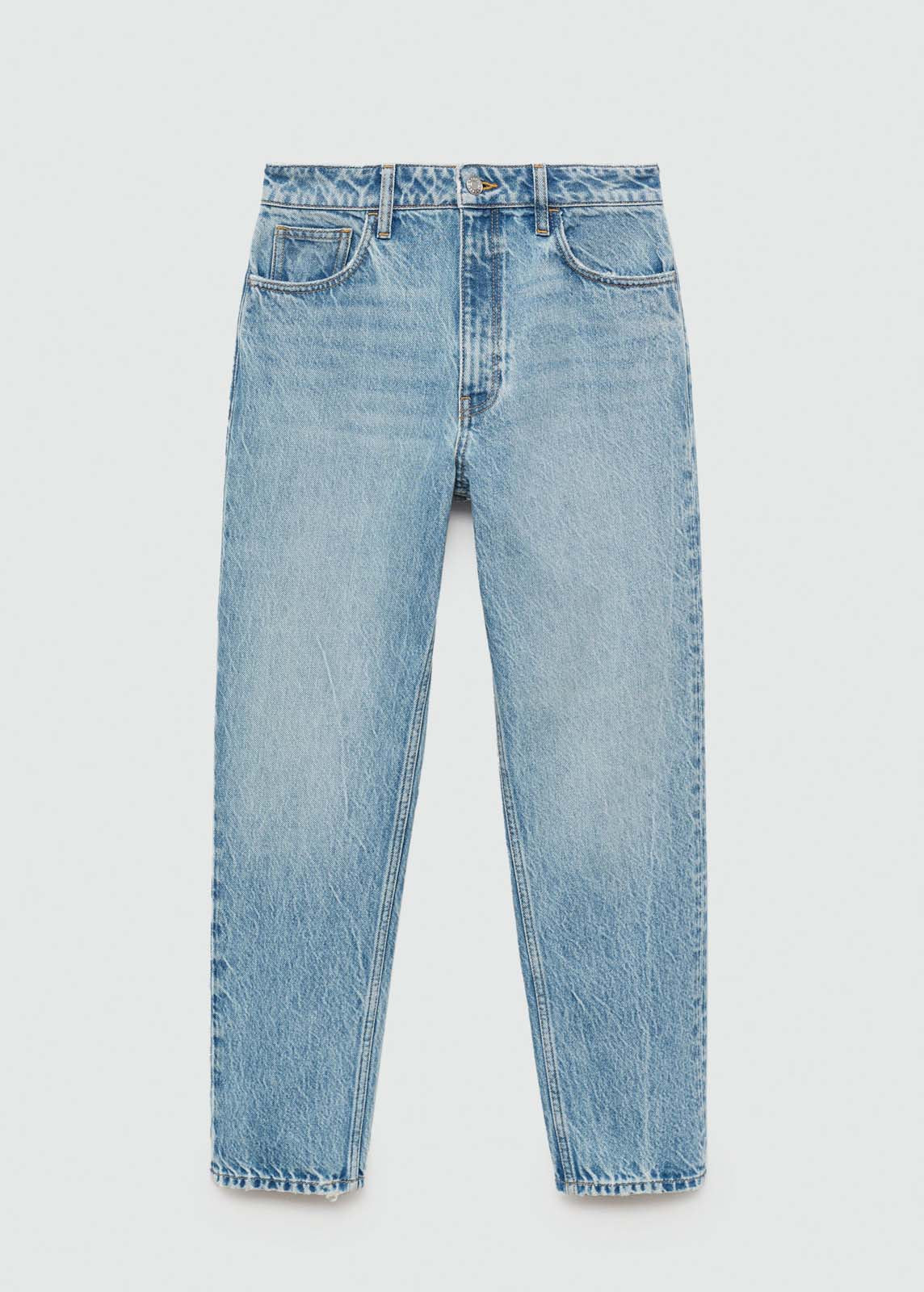 Cierre de cremallera y botón,Trabillas,Cinco bolsillos,Disponible Plus,Mom-fit,Tejido de algodón estilo tejano vaquero,Largo interior 69 cm,Tiro alto