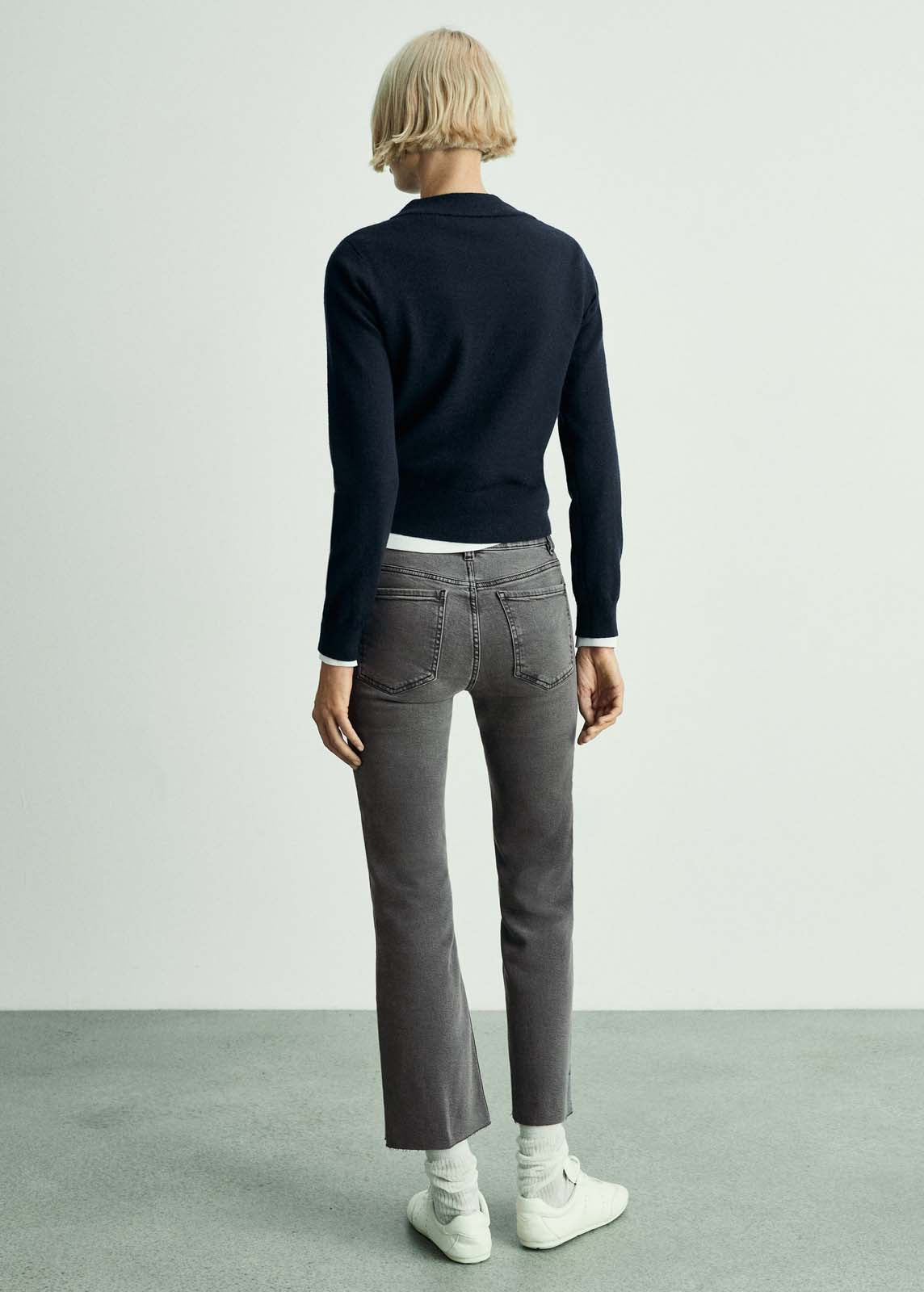 Trabillas,Tiro medio,Diseño crop,Cinco bolsillos,Disponible Plus,Diseño campana,Estilo flare,Tejido de algodón estilo tejano vaquero,Cierre delantero de cremallera y botón,Largo interior 65 cm,La modelo mide 1,78 y lleva una talla S/36