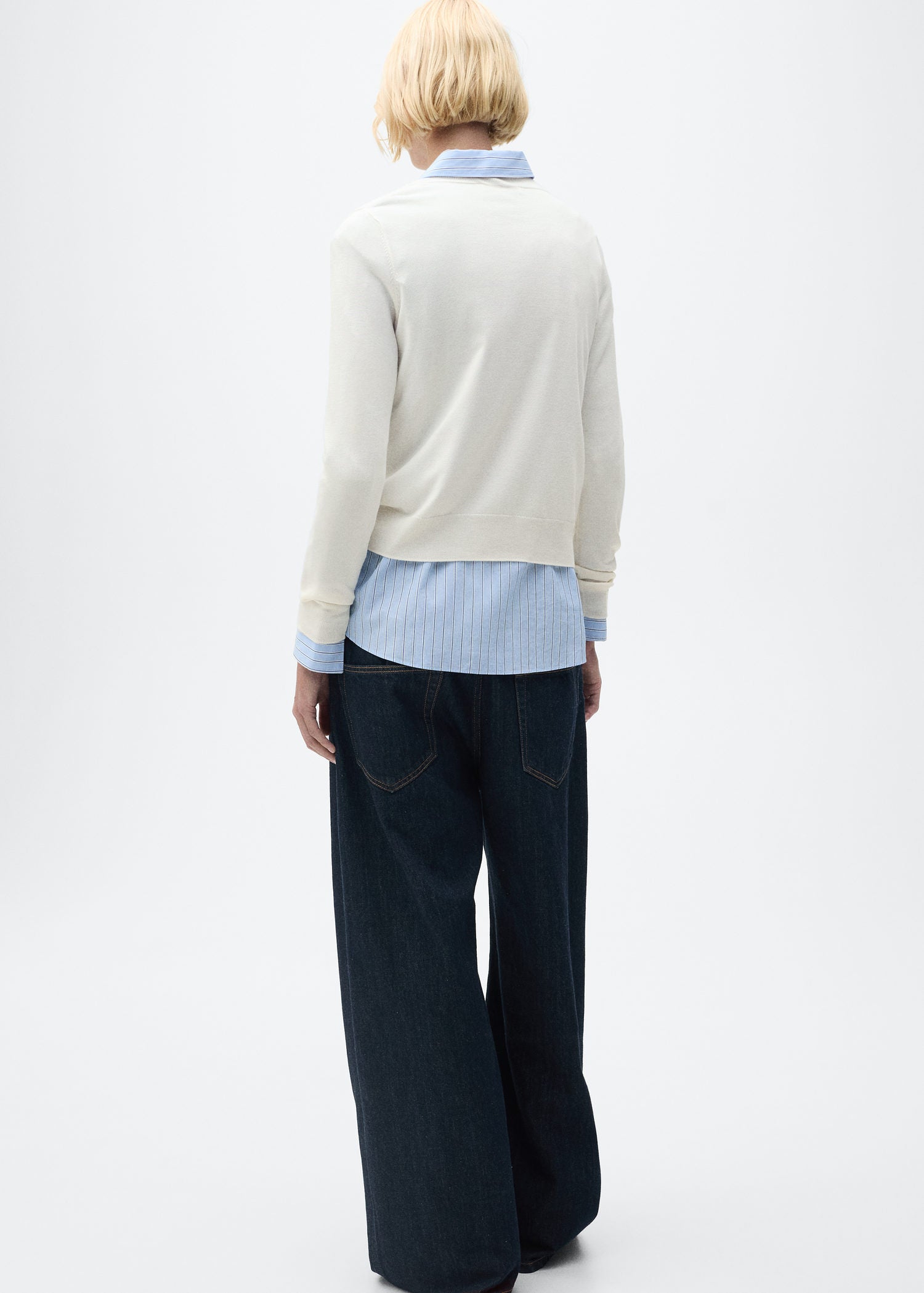 Tejido de punto fino,Cuello pico,Sin cierre,Disponible Plus,Diseño recto,Manga larga