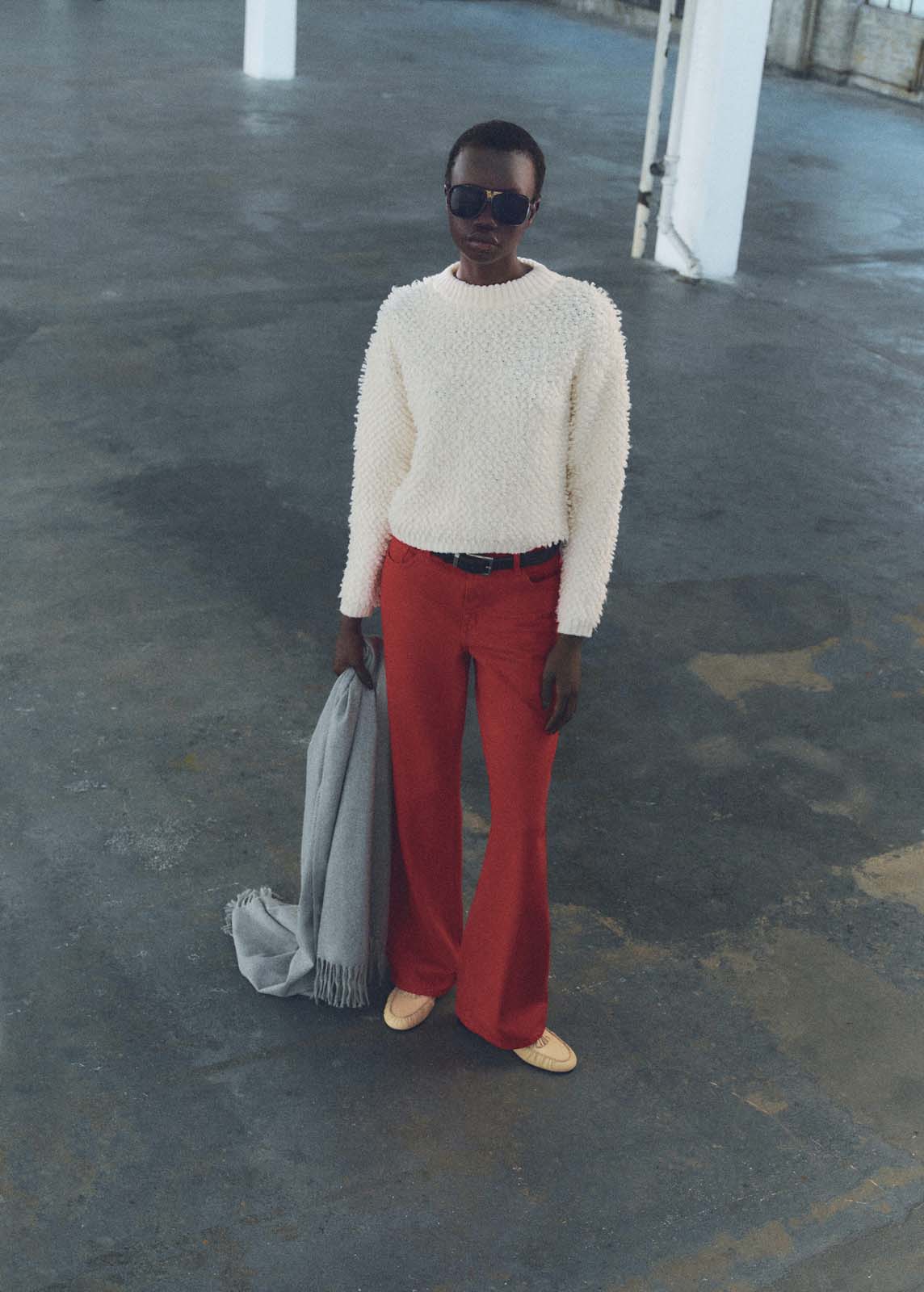 Tejido de punto grueso,Terminaciones de canalé,Cuello redondo,Diseño recto,Tejido bouclé