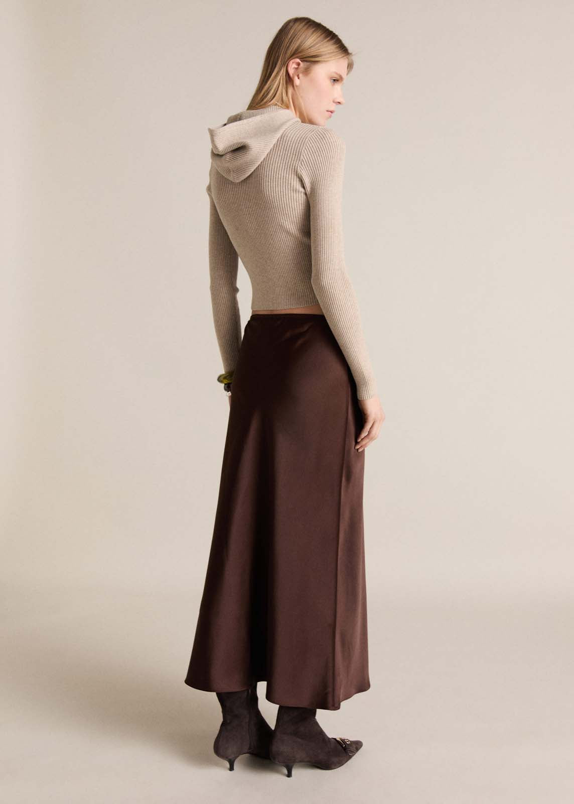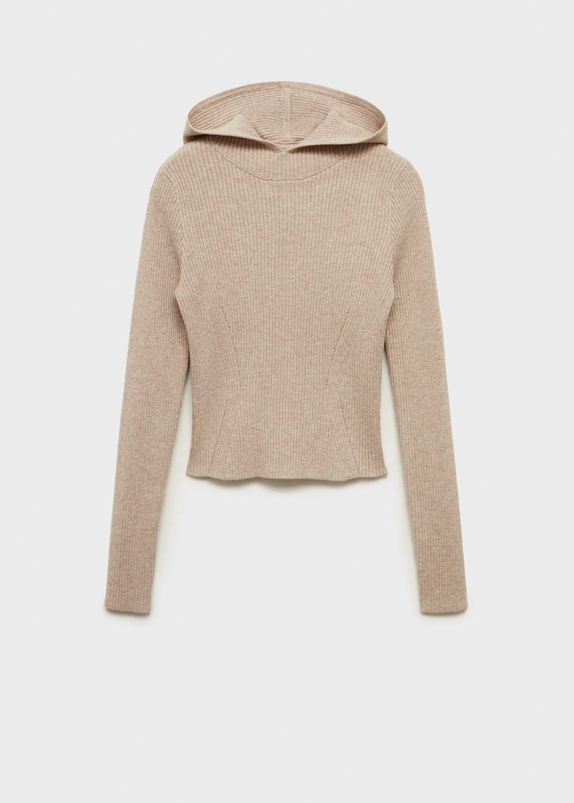 Tejido de punto de canalé,Sin cierre,Diseño crop,Slim fit,Con capucha,Cuello alto,Manga larga