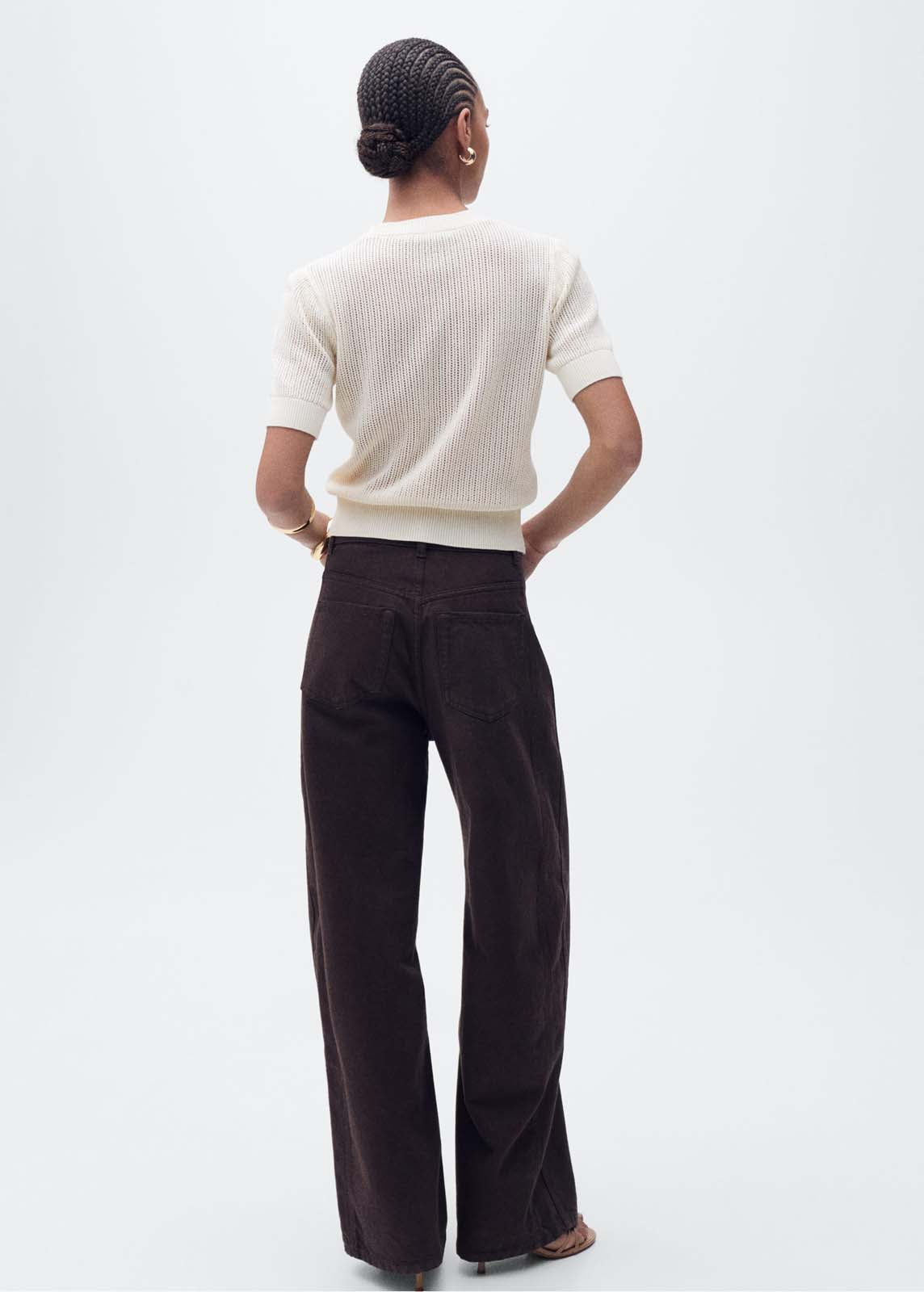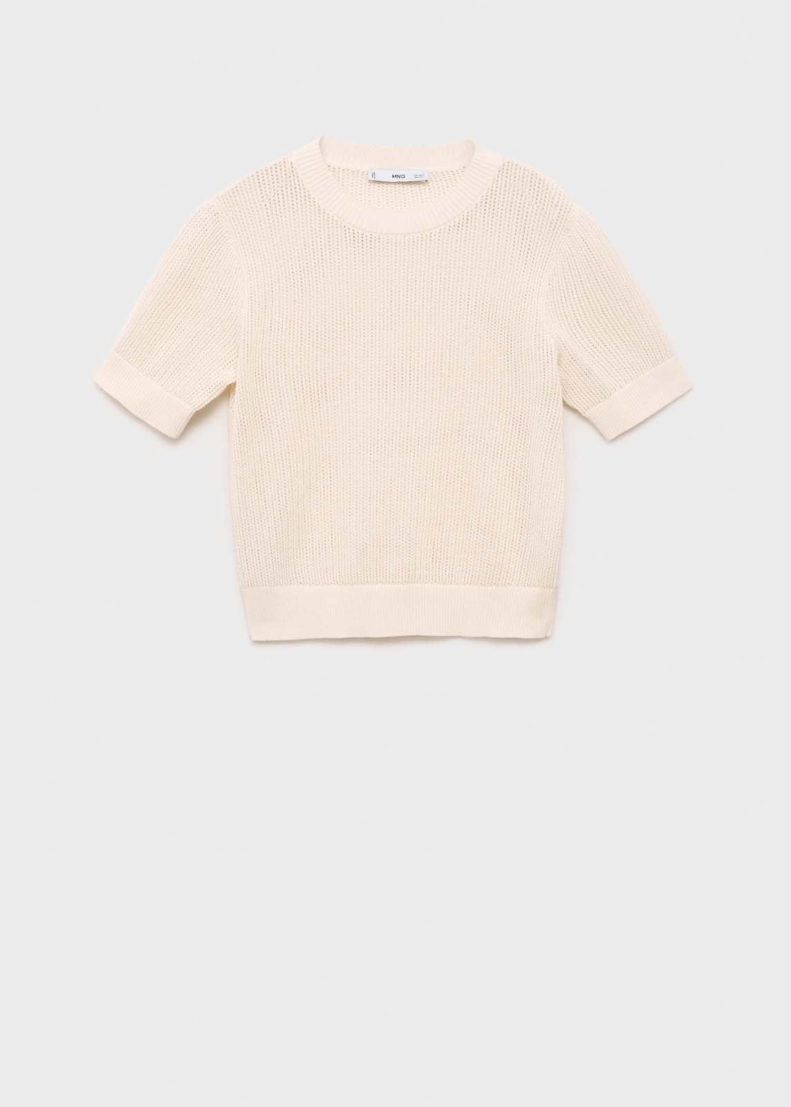 Manga corta,Tejido de punto calado,Terminaciones de canalé,Cuello redondo,Diseño recto,Tejido mezcla de algodón