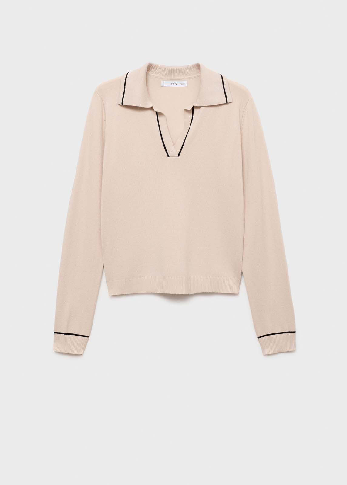 Diseño estándar,Cuello pico con solapa,Ribetes en contraste,Tejido de punto fino,Sin cierre,Disponible Plus,Diseño recto,Manga larga
