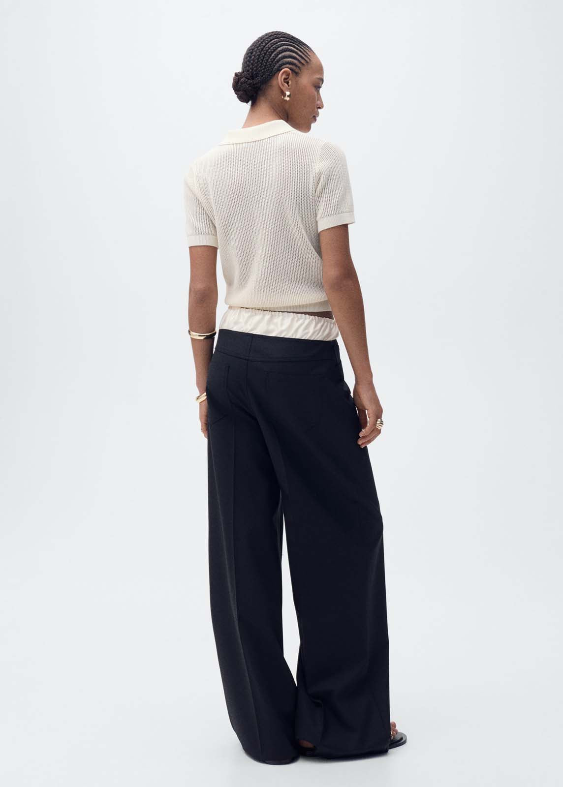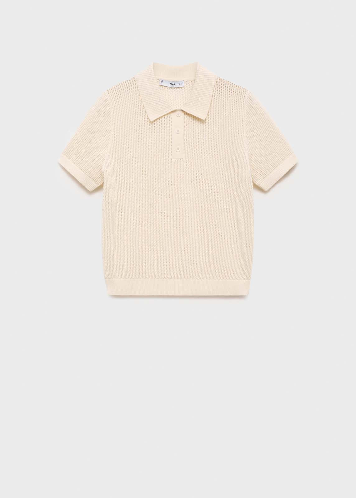 Manga corta,Tejido de punto calado,Cierre de botones en el cuello,Cuello polo,Diseño recto,Diseño crochet,Tejido mezcla de algodón