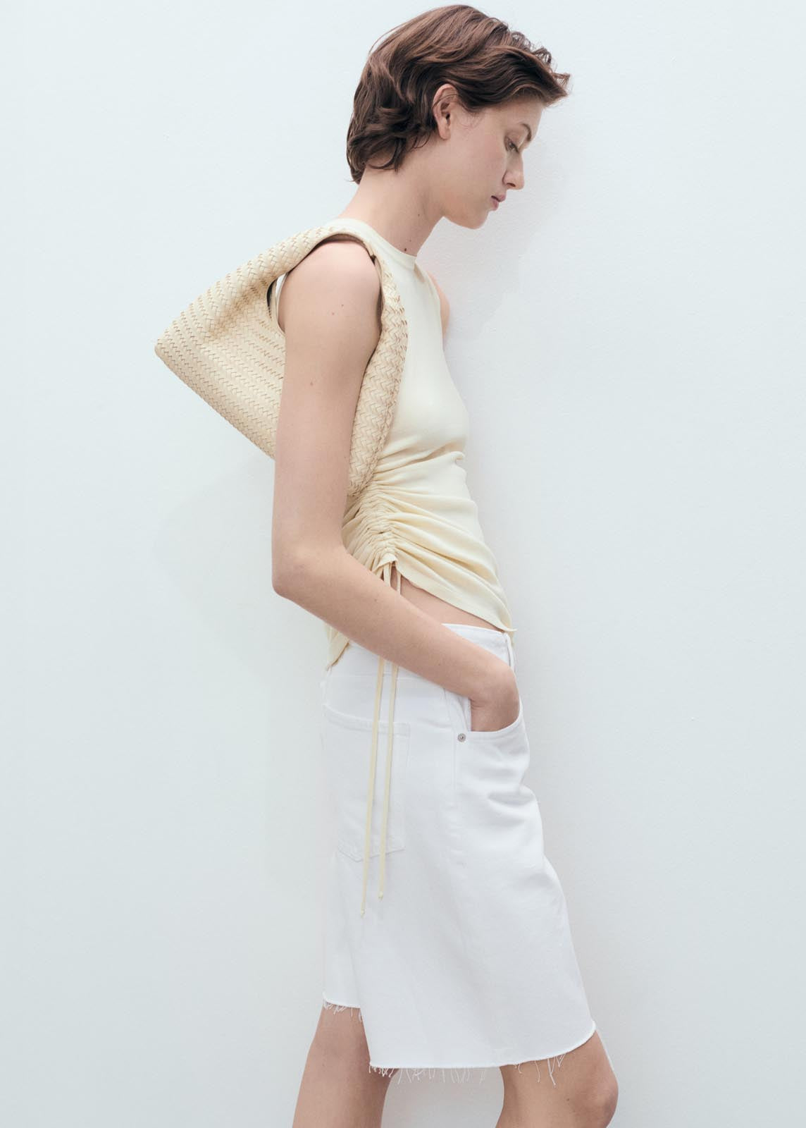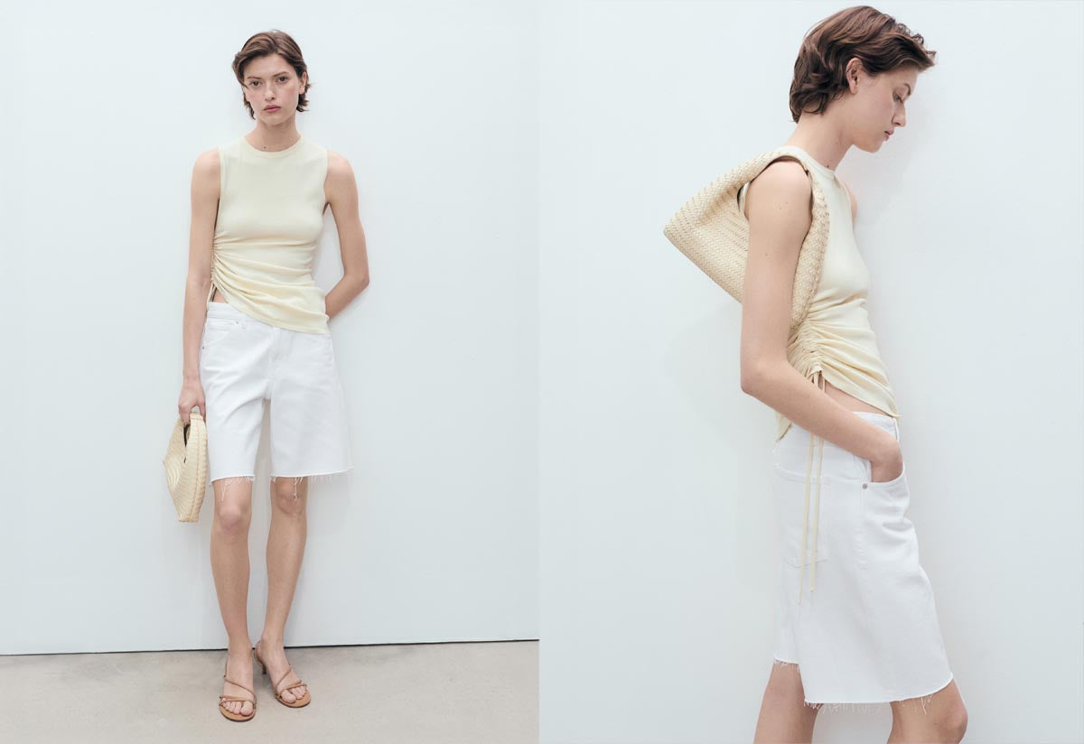 Trabillas,Tiro medio,Cierre delantero de cremallera y botón,Diseño corto,Cinco bolsillos,Diseño recto,Bajo deshilachado,Tejido de algodón estilo tejano vaquero