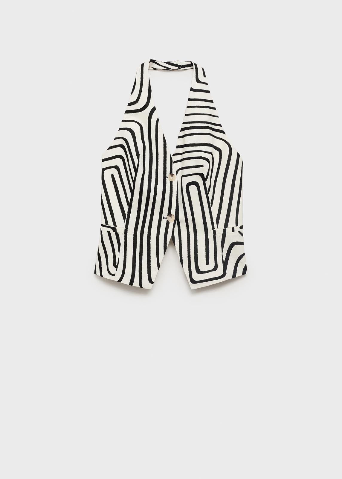 Forro interior 100% algodón,Sin mangas,Tejido mezcla de algodón y lino,Espalda abierta con cierre de hebilla,Total look,Escote de pico,Estampado geométrico,Diseño recto,Cierre de botón en el cuello,Cuello halter,Cierre delantero con botones