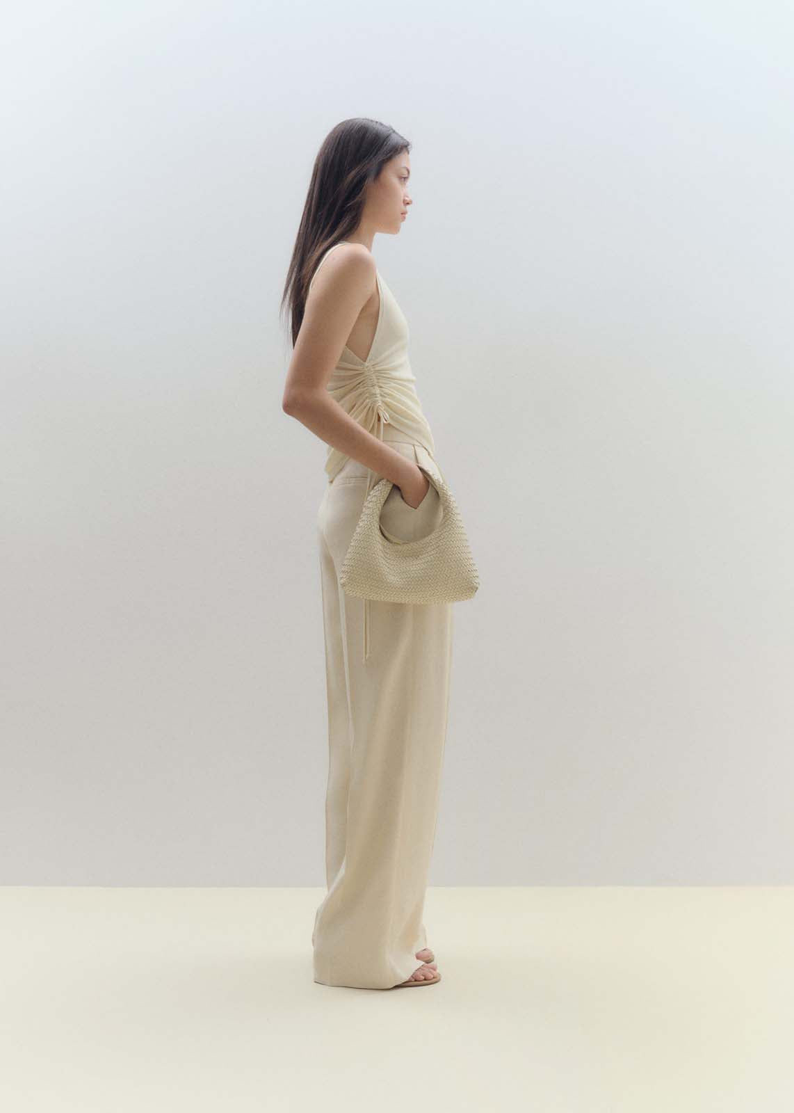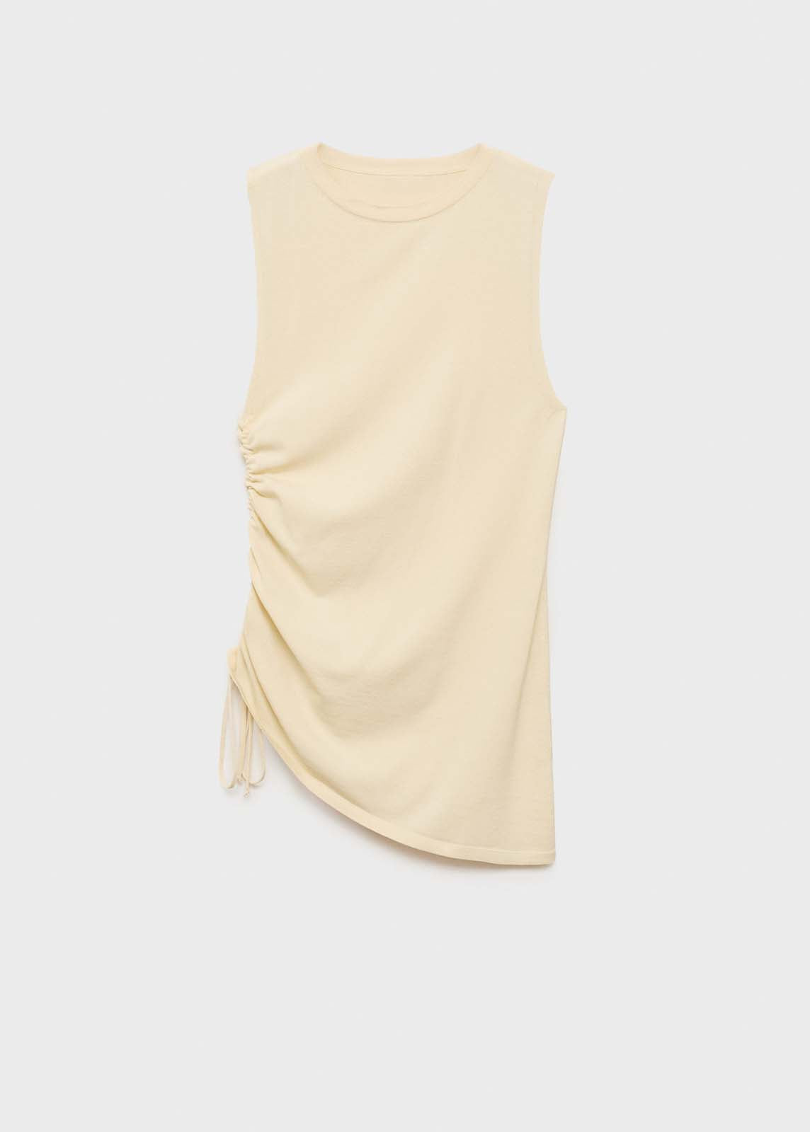 Detalle fruncido en el lateral,Tejido de punto fino,Sin cierre,Cuello redondo,Sin mangas,Diseño entallado