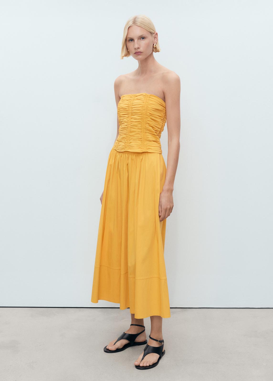 Diseño bandeau,Total look,Cierre de cremallera en la parte posterior,Detalles fruncidos,Sin mangas,Tejido de algodón