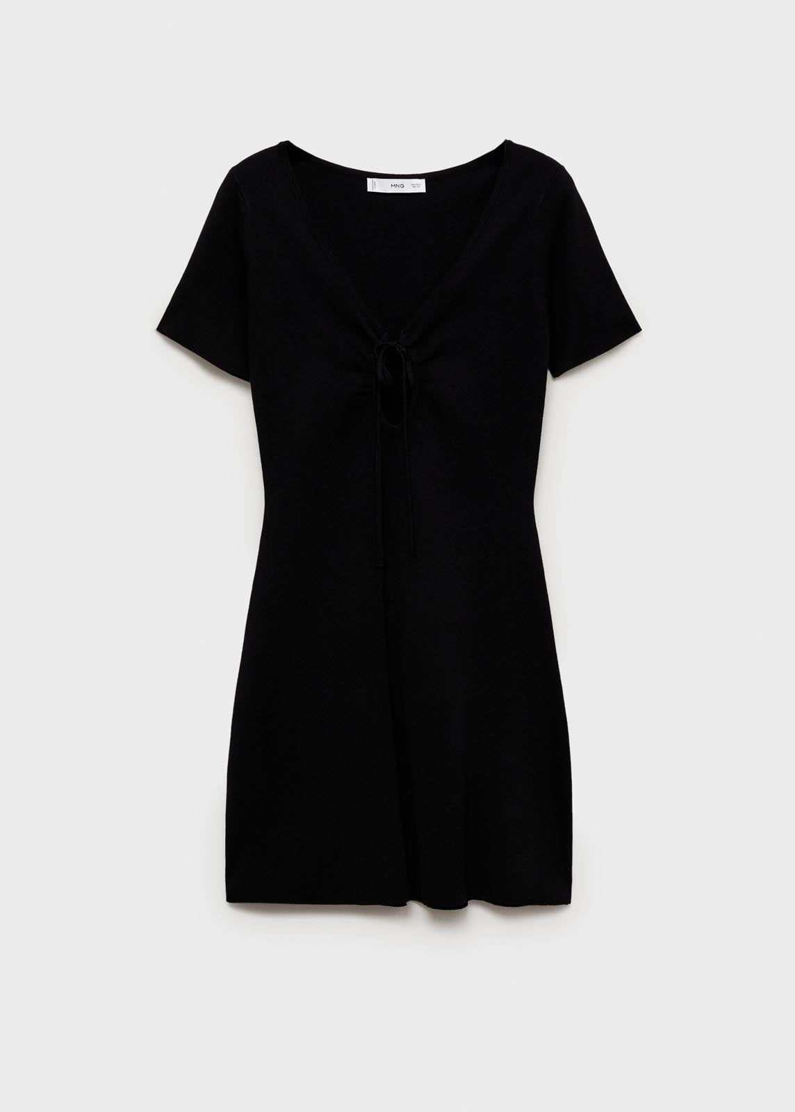 Manga corta,Detalle de lazo en el escote,Esta prenda forma parte de nuestra colección casual, diseñada para acompañarte con estilo en tu día a día,Tejido de punto fino,Sin cierre,Diseño corto,Diseño evasé,Escote de pico