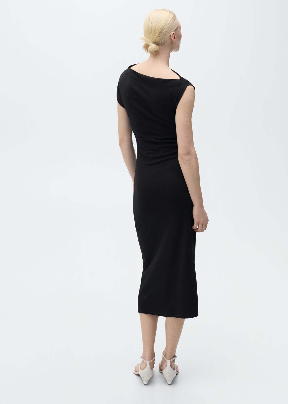Manga corta,Sin cierre,Cuello asimétrico,Diseño midi,Diseño entallado,Cintura drapeada