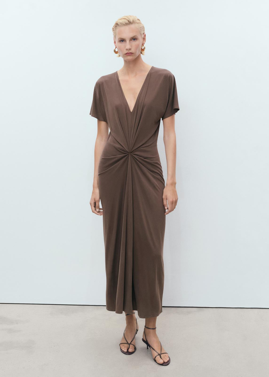 Detalle fruncido,Sin cierre,Manga corta,Esta prenda forma parte de nuestra colección casual, diseñada para acompañarte con estilo en tu día a día,Escote de pico,Diseño recto,Diseño largo