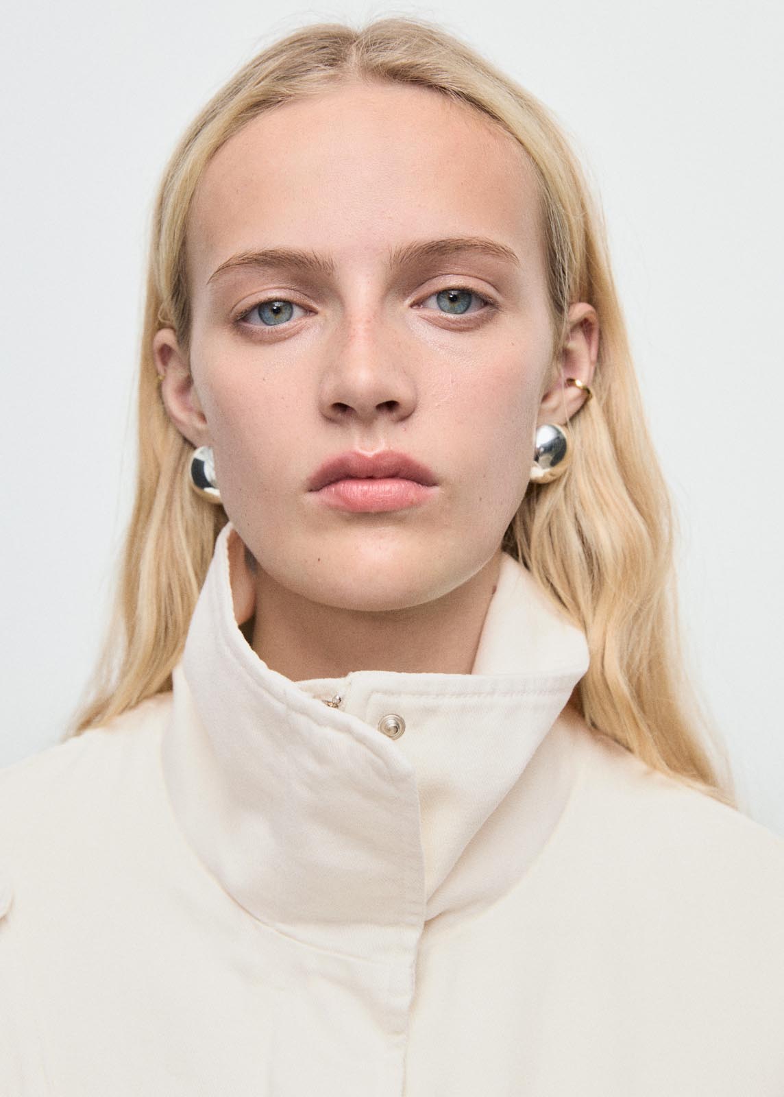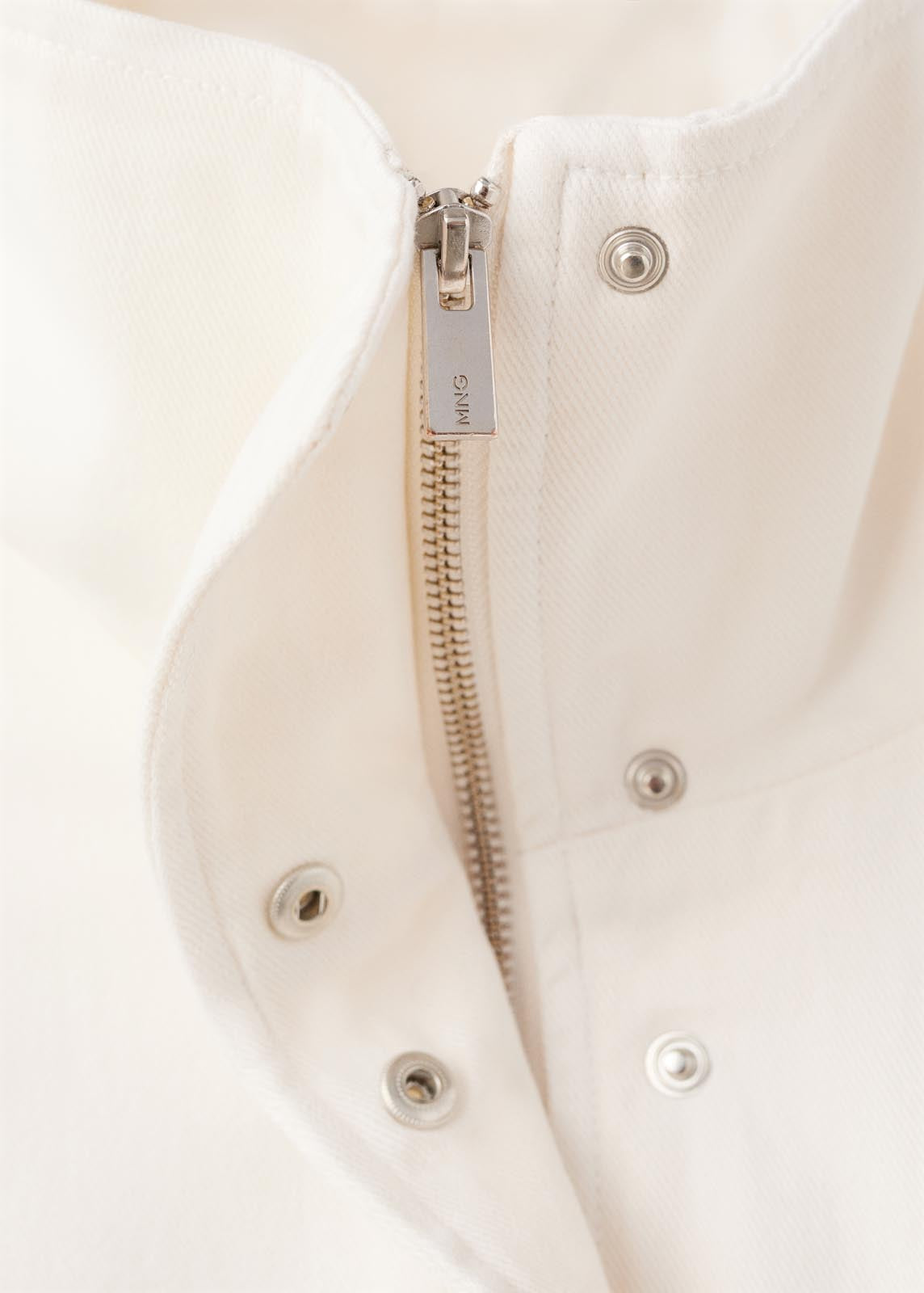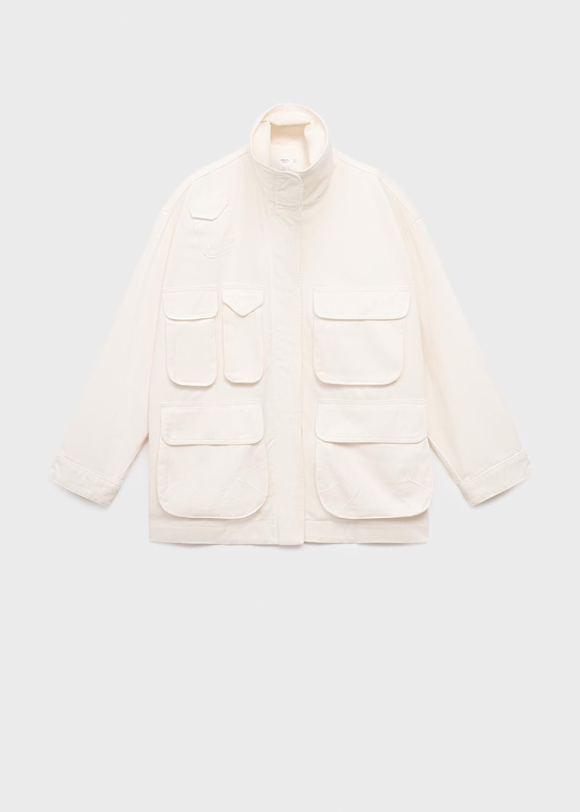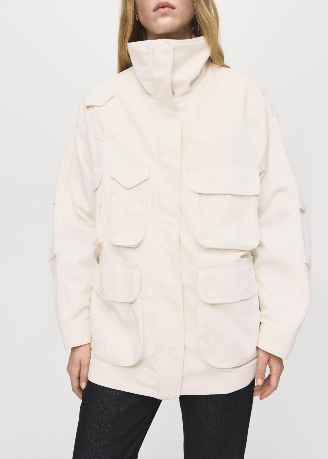 Bolsillos de parche y solapa,Cuello embudo,Tejido de algodón estilo tejano vaquero,Diseño oversize,Cierre de cremallera y botones a presión,Manga larga
