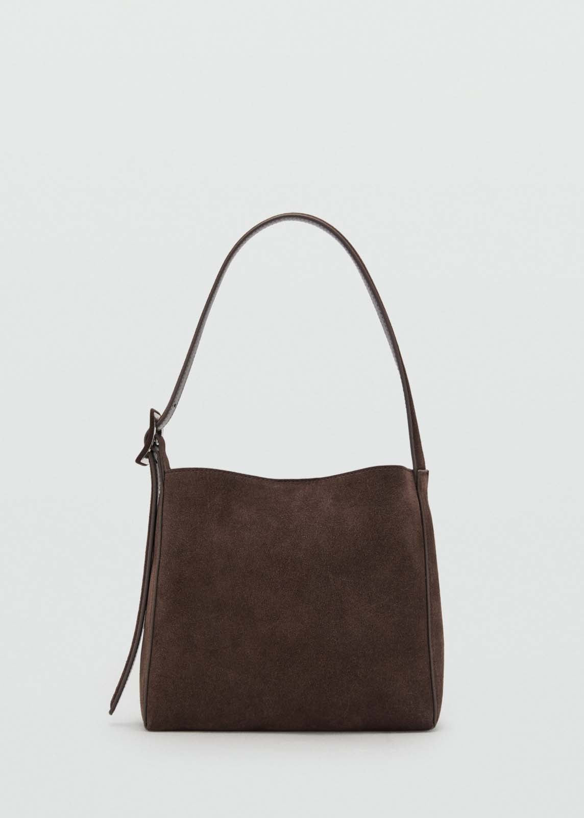 Asa con hebilla ajustable,Estilo shopper,Cierre de botón magnético,100% piel bovino,Piel de serraje,Asa de hombro,Tamaño mediano,Forro interior,El color marrón café es exclusivo online