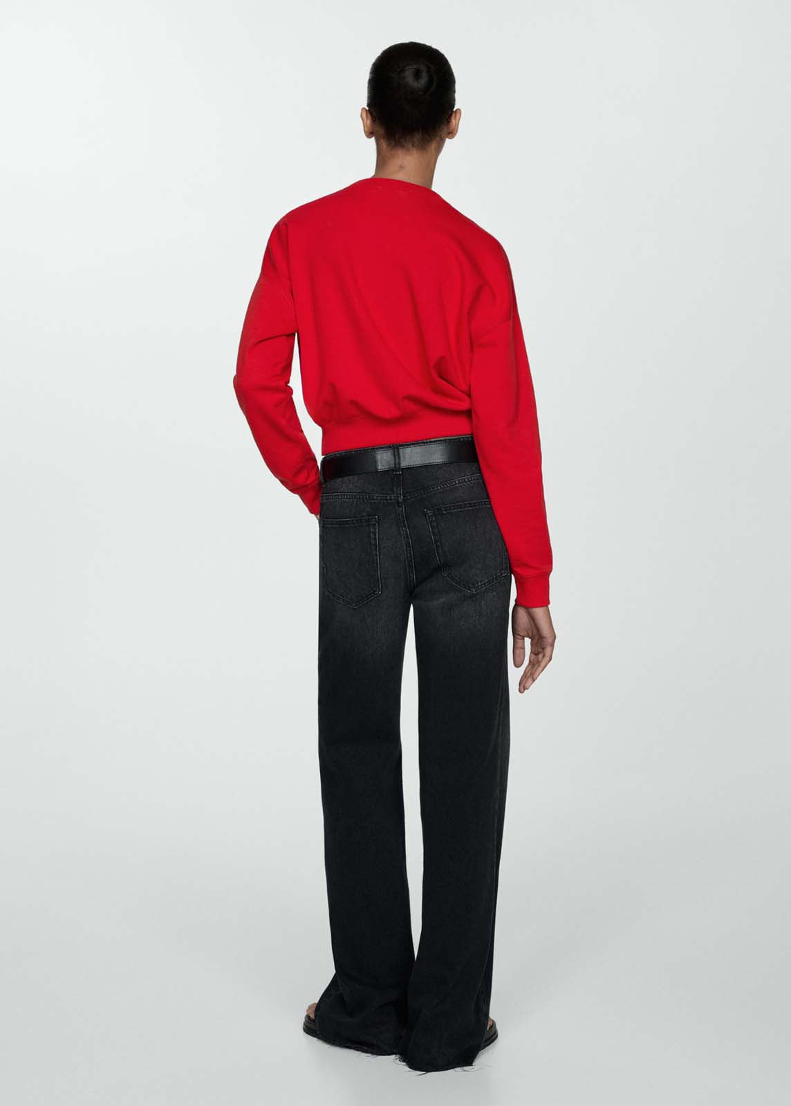 Manga larga con puños elásticos,Cuello redondo,Diseño recto,Bajo con goma elástica,Tejido 100% algodón
