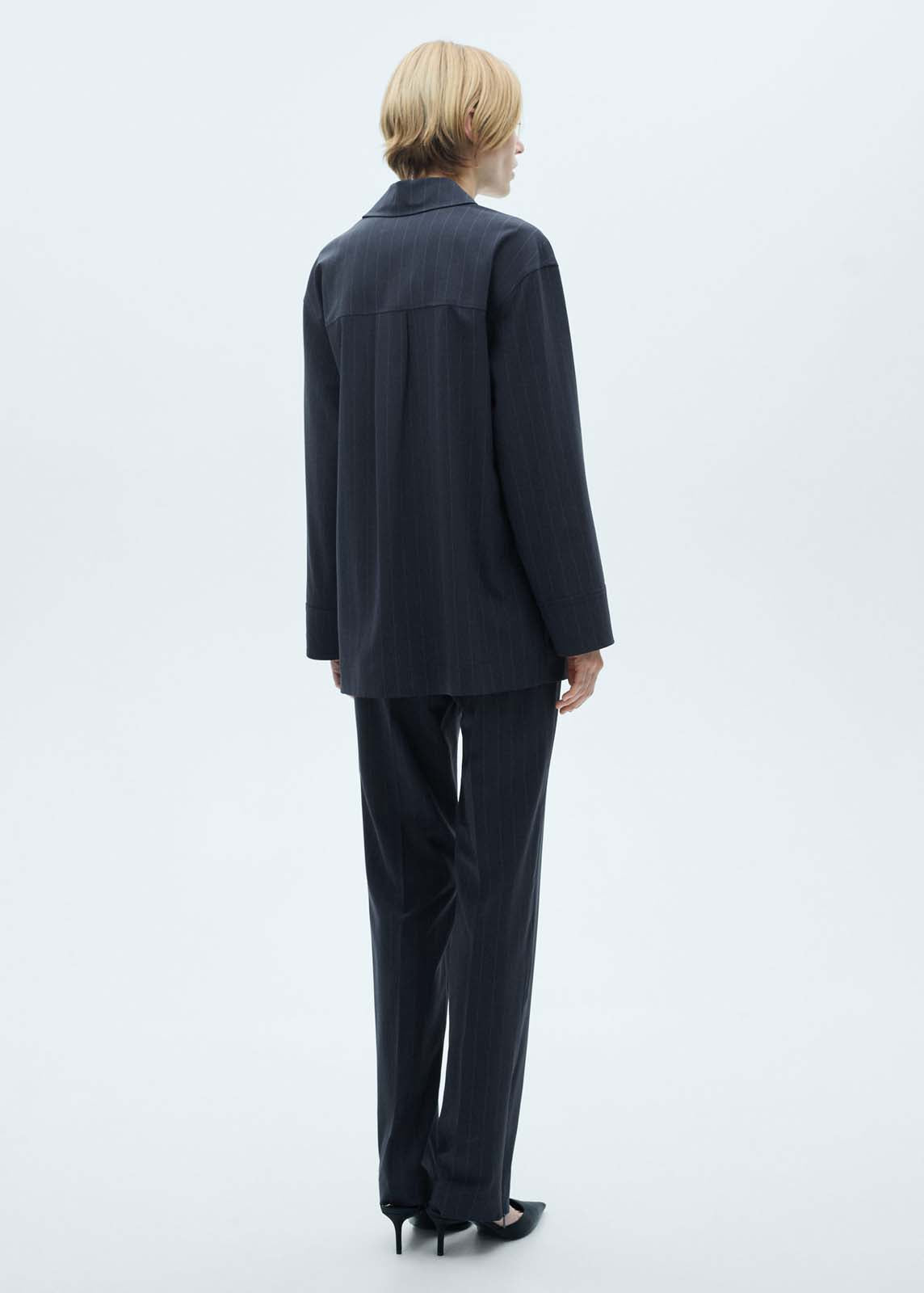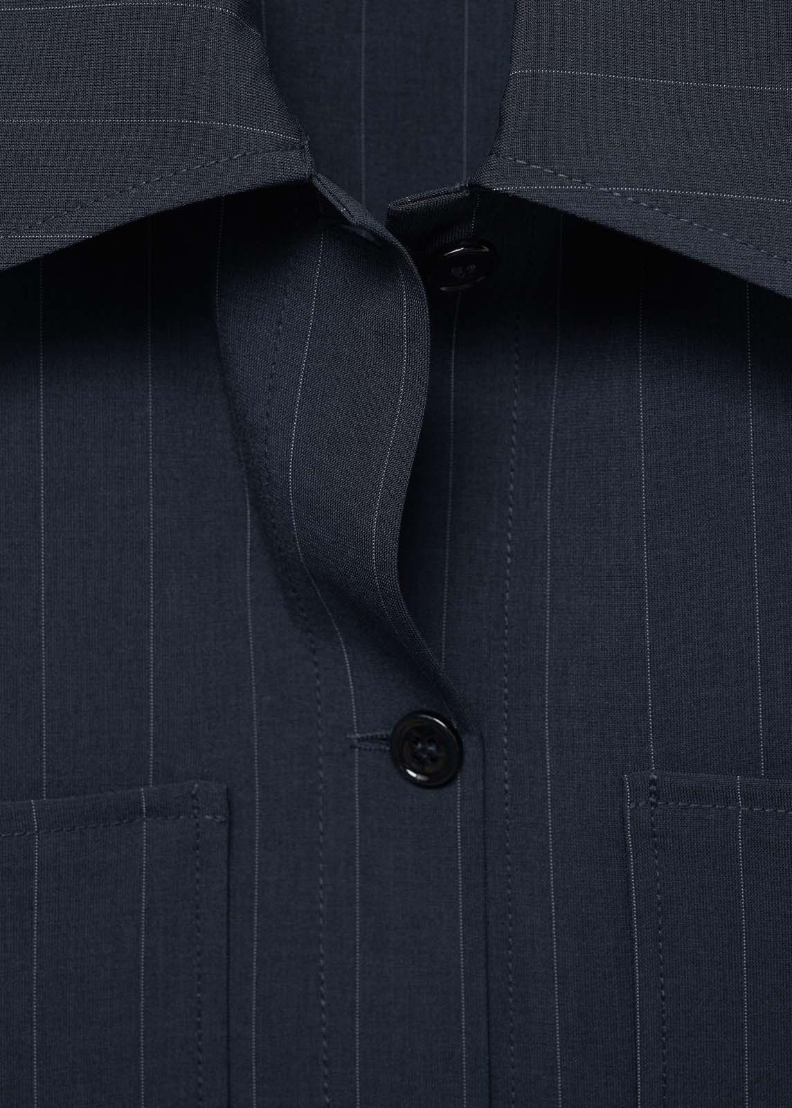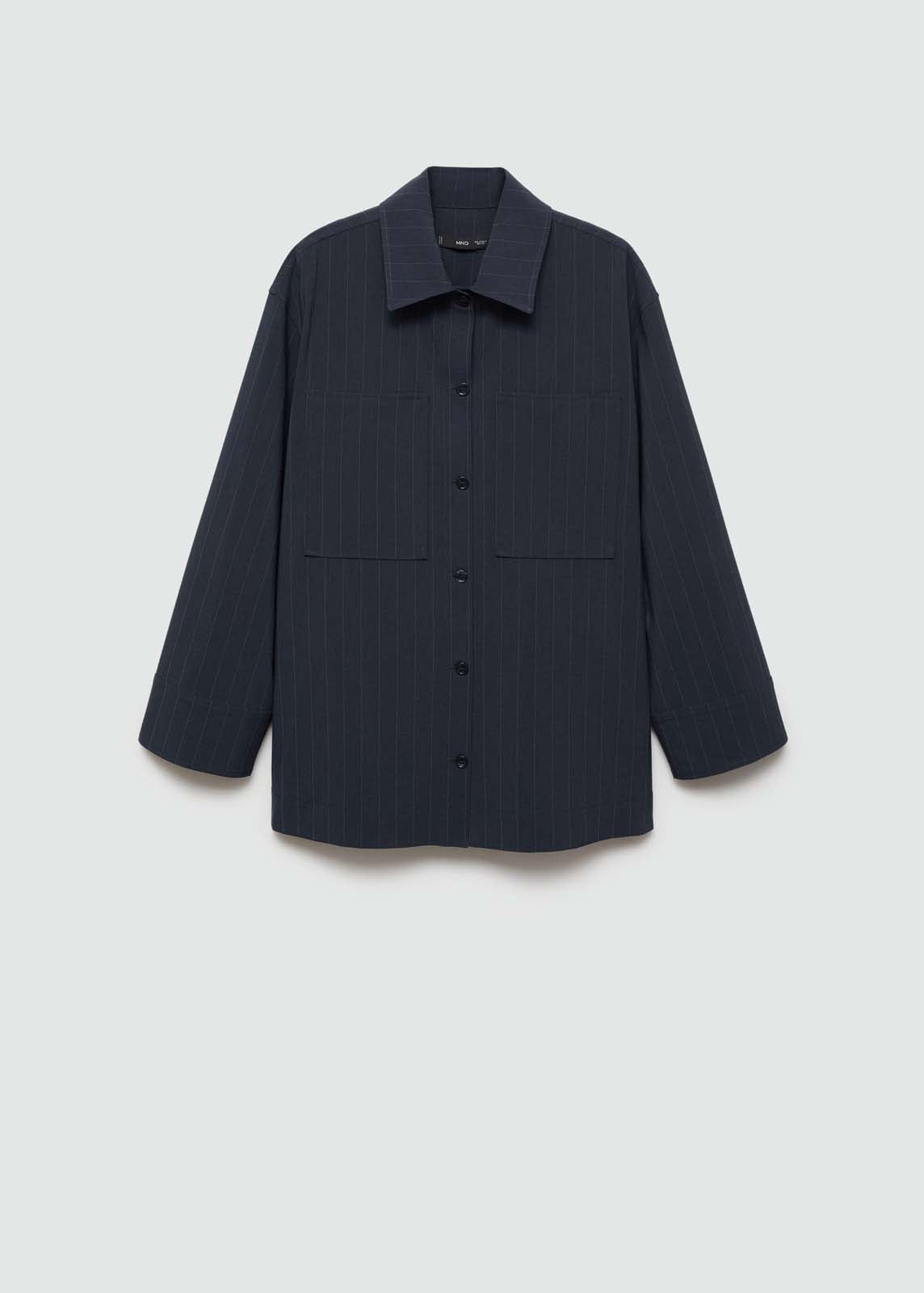 Dos bolsillos de parche en la parte delantera,Cierre de botones en la parte delantera,Total look,Diseño recto,Cuello camisero,Diseño raya diplomática,La modelo mide 1,81 y lleva una talla S/36,Manga larga