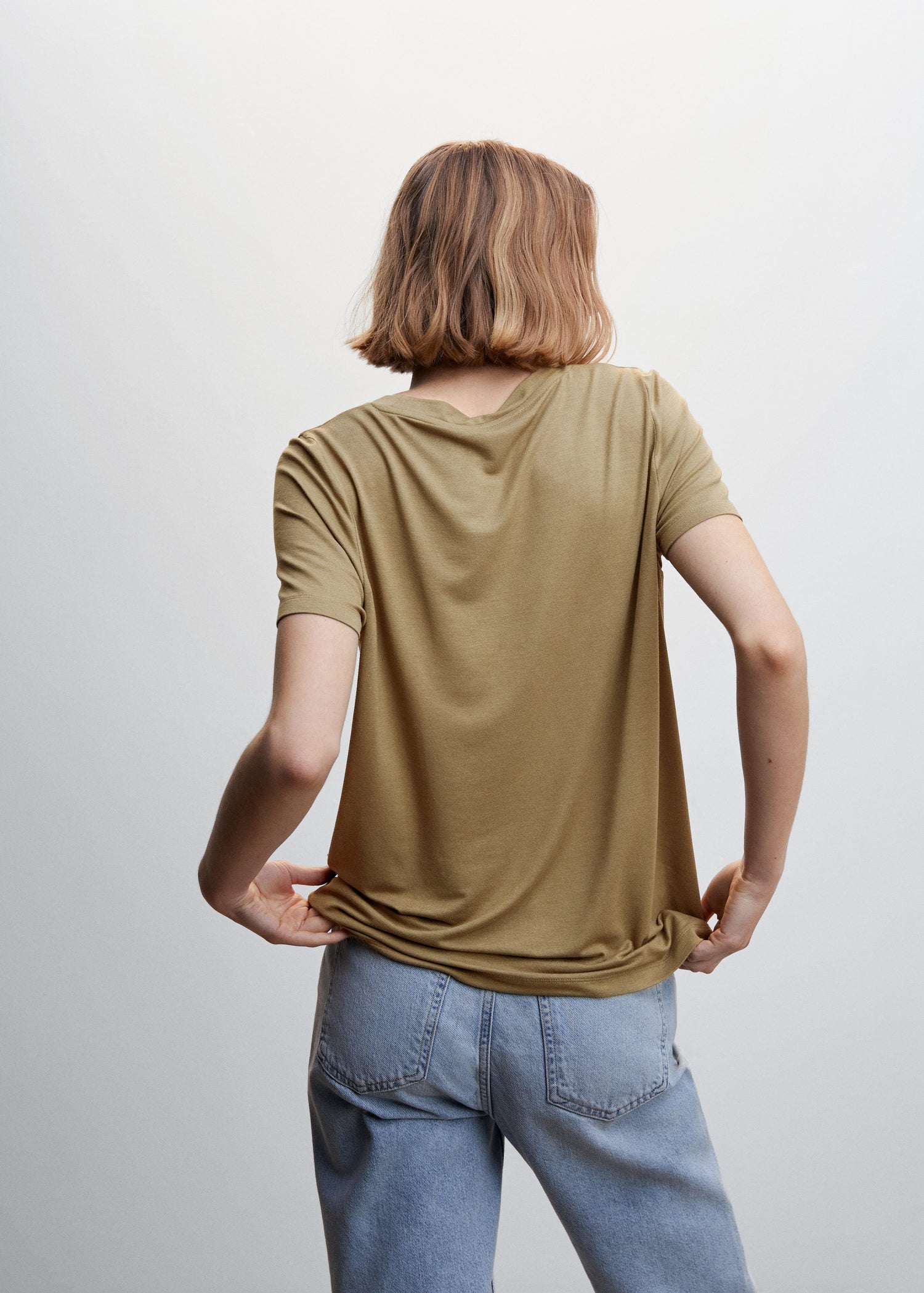 • Camiseta manga corta fluida- Cuello redondo,Manga corta,Diseño recto,Tejido fluido,Disponible Plus- No usar lejia, Plancha max 110°c, Lavar a maquina max 30°c centrifugado corto, No limpiar en seco, No se puede usar secadora- COMPOSICIÓN: 96% VISCOSA, 4% ELASTANO - 420mm x 685mm-