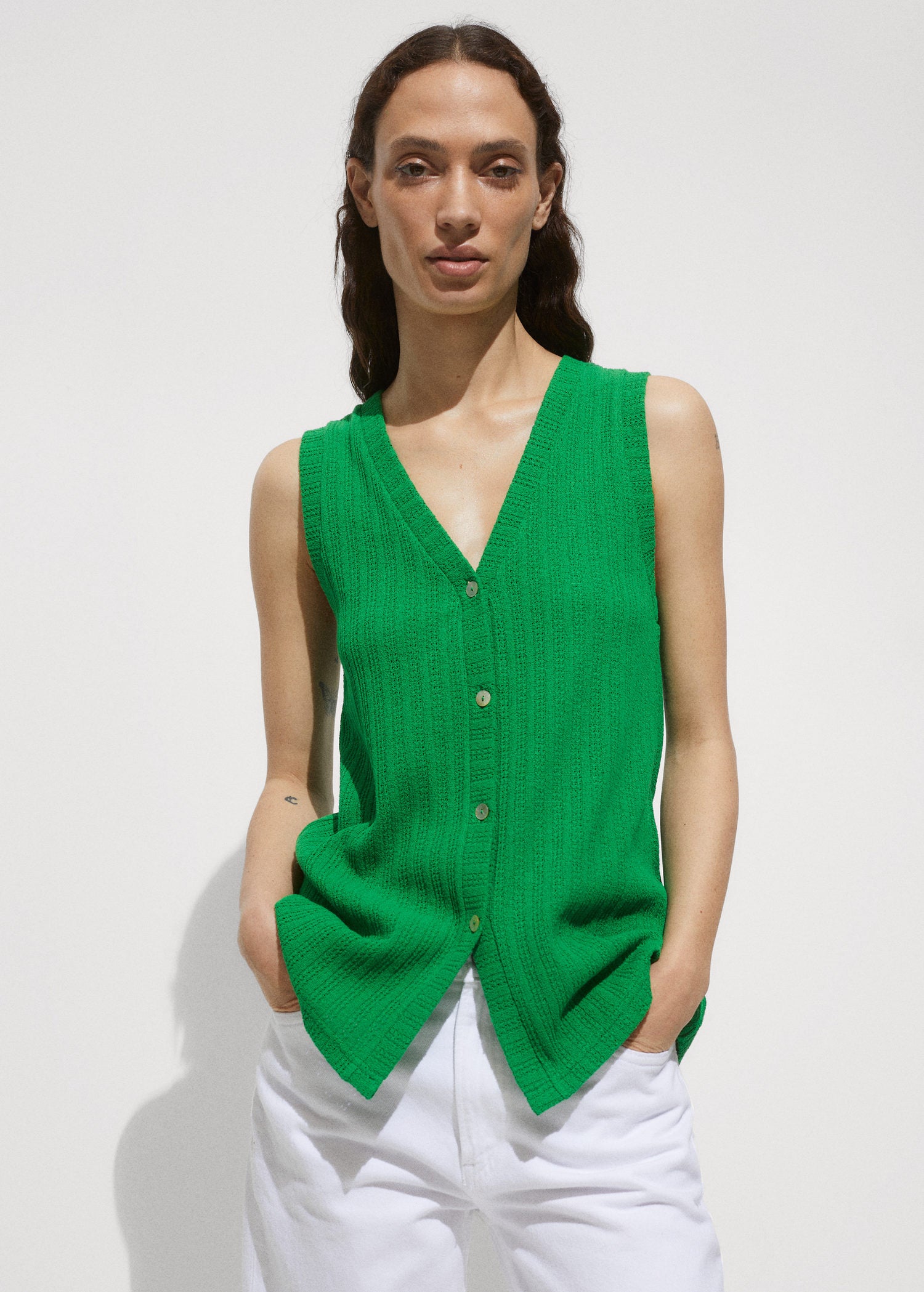 Festival Season,Disponible Plus,Total look,Escote de pico,Diseño recto,Diseño largo,Sin mangas,Tejido mezcla de algodón,Cierre delantero con botones,Tejido de crochet