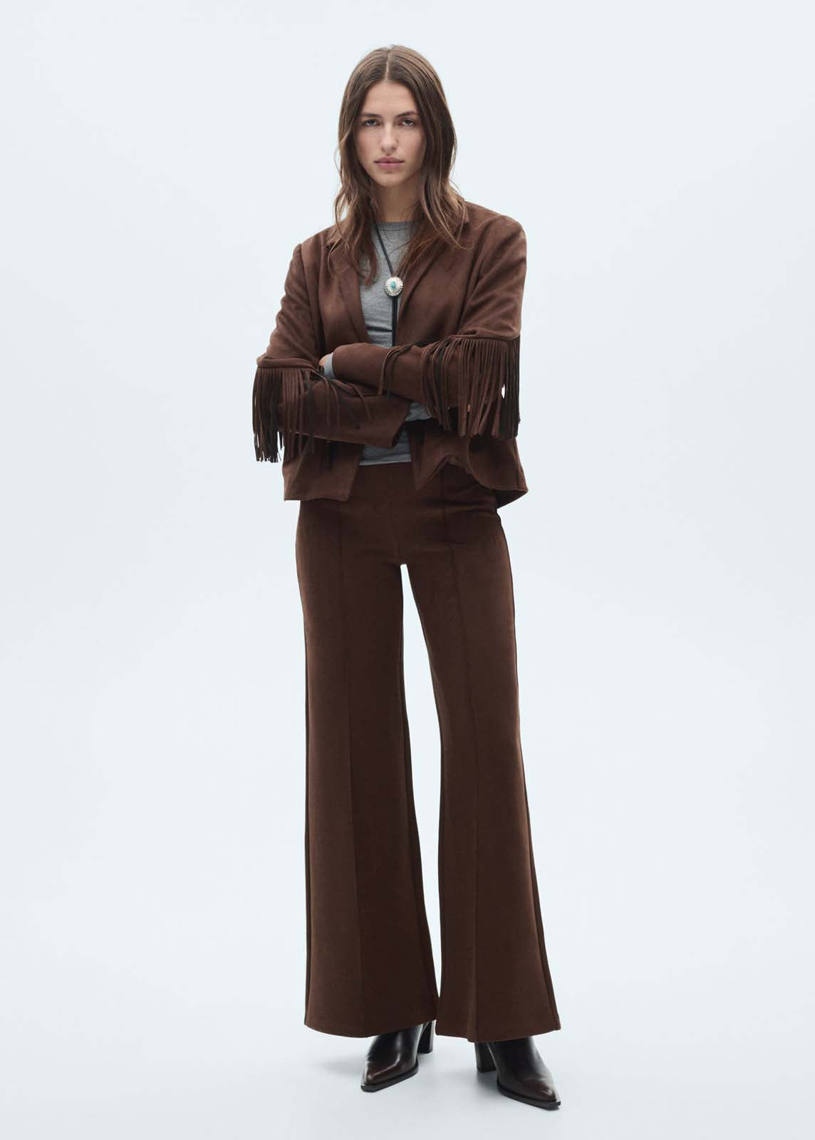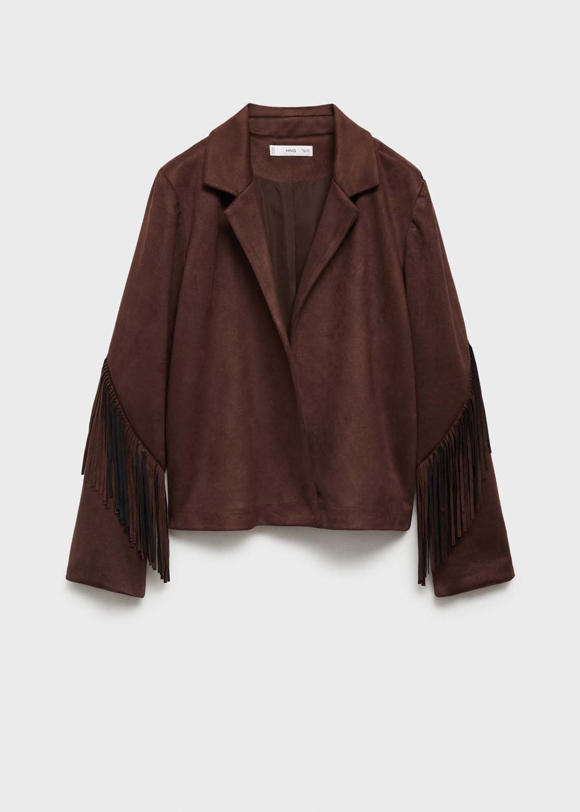Forro interior,Efecto piel,Cuello pico con solapa,Sin cierre,Total look,Diseño recto,Detalle de flecos,La modelo mide 1,78 y lleva una talla S/36,Manga larga