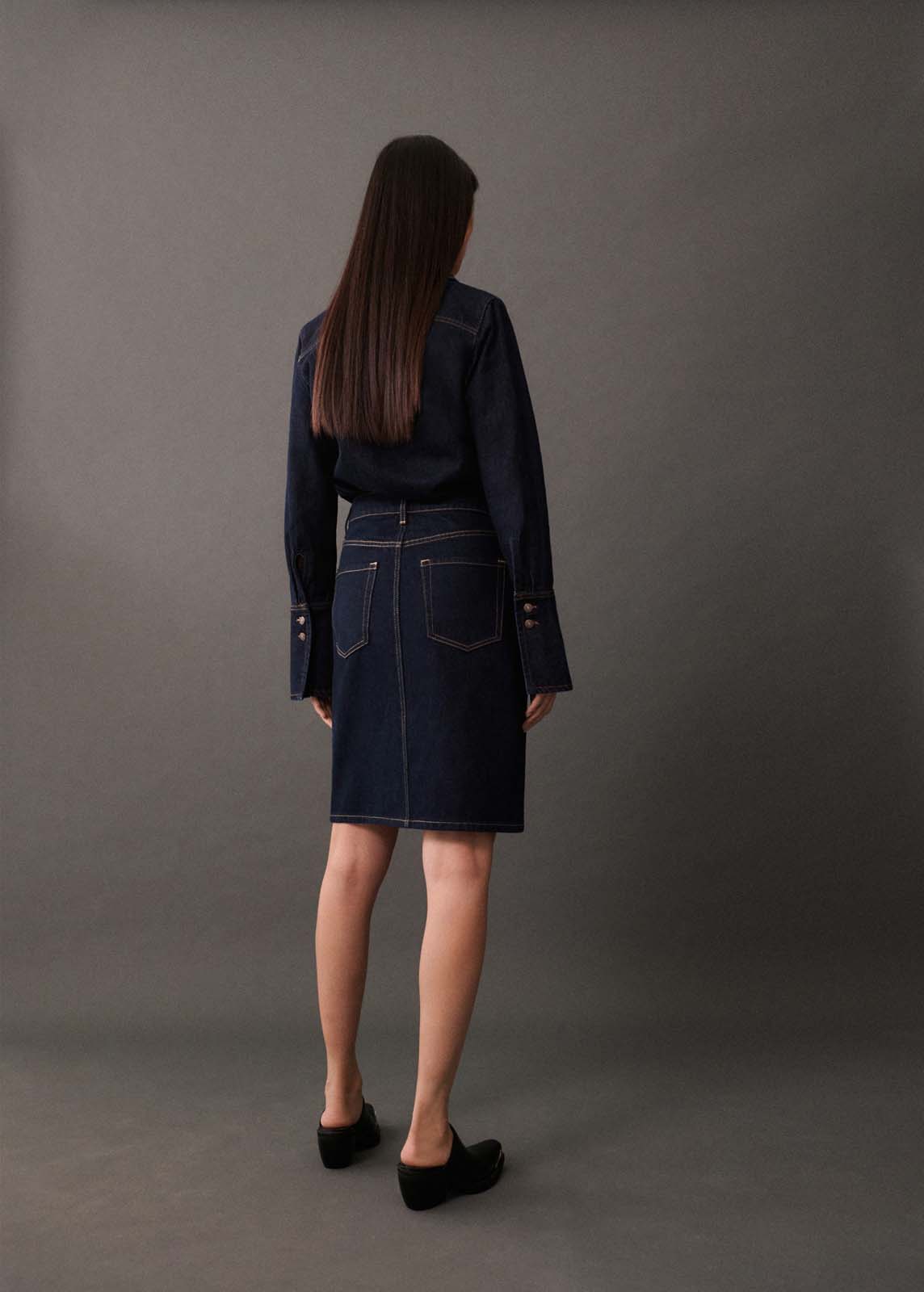 Abertura en el bajo parte delantera,Trabillas,Diseño corto,Cinco bolsillos,Tejido de algodón estilo tejano vaquero,Cierre delantero de cremallera y botón,Diseño entallado,La modelo mide 1,77 y lleva una talla S/36,Rinse wash