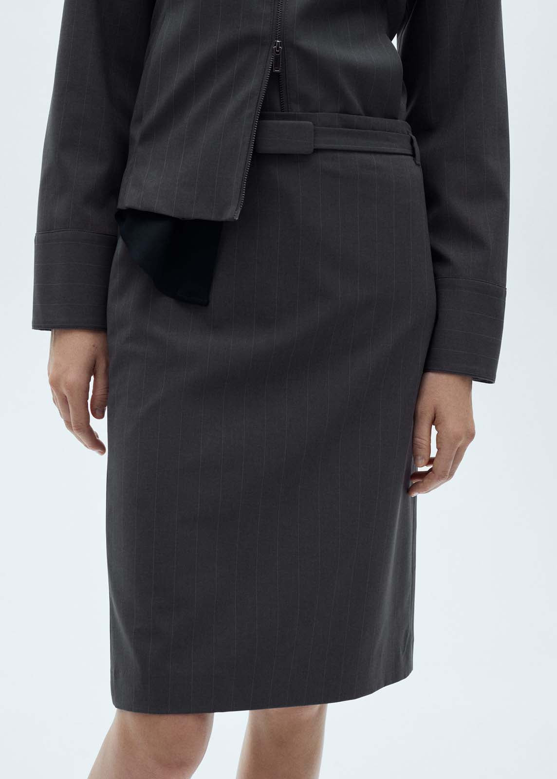 Forro interior,Diseño lápiz,Abertura en el bajo,Total look,Diseño raya diplomática,Cinturón desmontable,Diseño midi,Diseño entallado,La modelo mide 1,81 y lleva una talla S/36