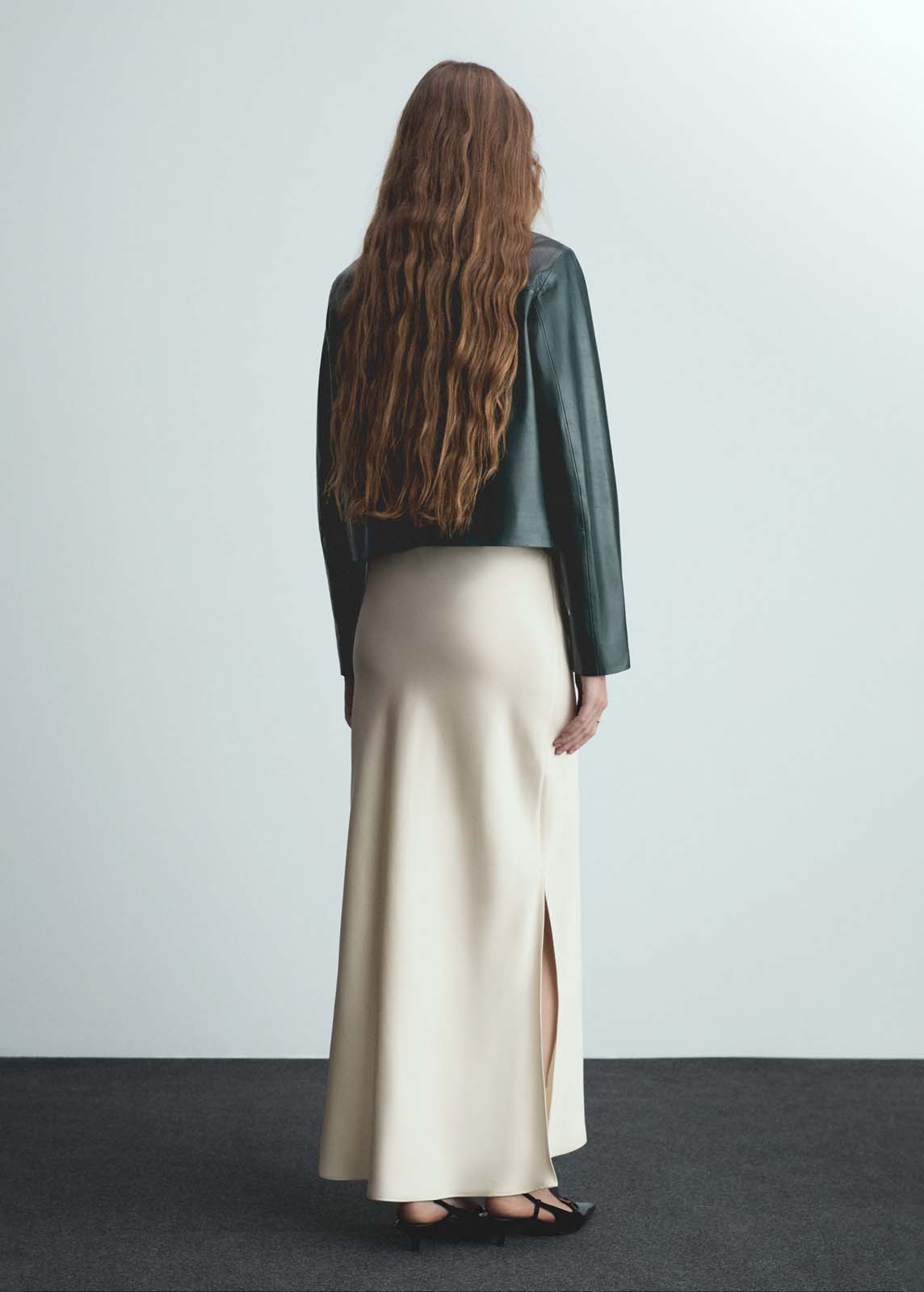Diseño maxi,Tejido fluido,Tiro medio,Goma elástica,Sin cierre,Tejido satinado,Tejido ligero,Diseño evasé,Diseño recto,Sin forro interior,Diseño largo,La modelo mide 1,79 y lleva una talla S/36,La modelo mide 1,78 y lleva una talla S/36